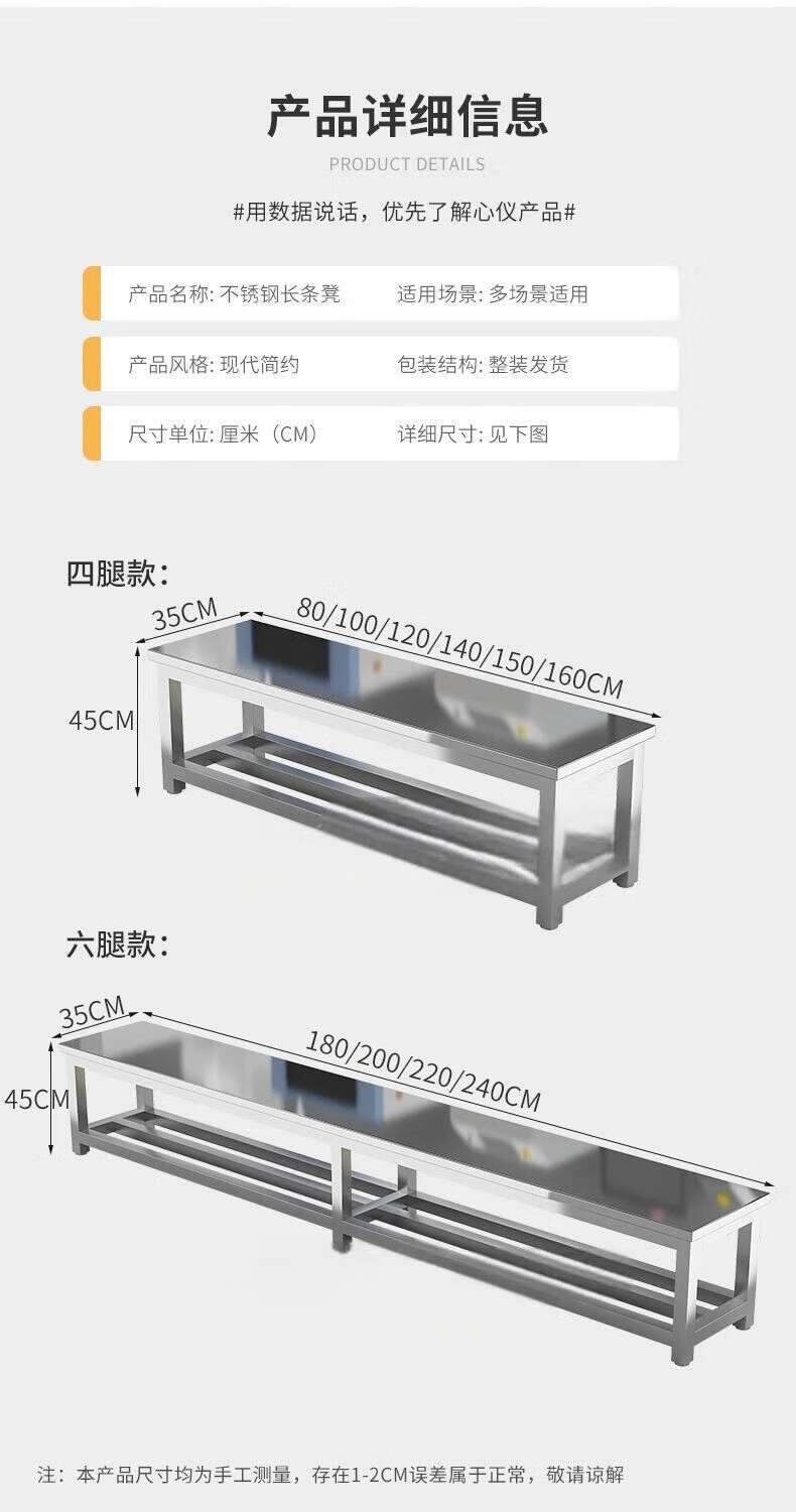 焕菱 不锈钢长条凳 四腿款 120*35*45cm 1个