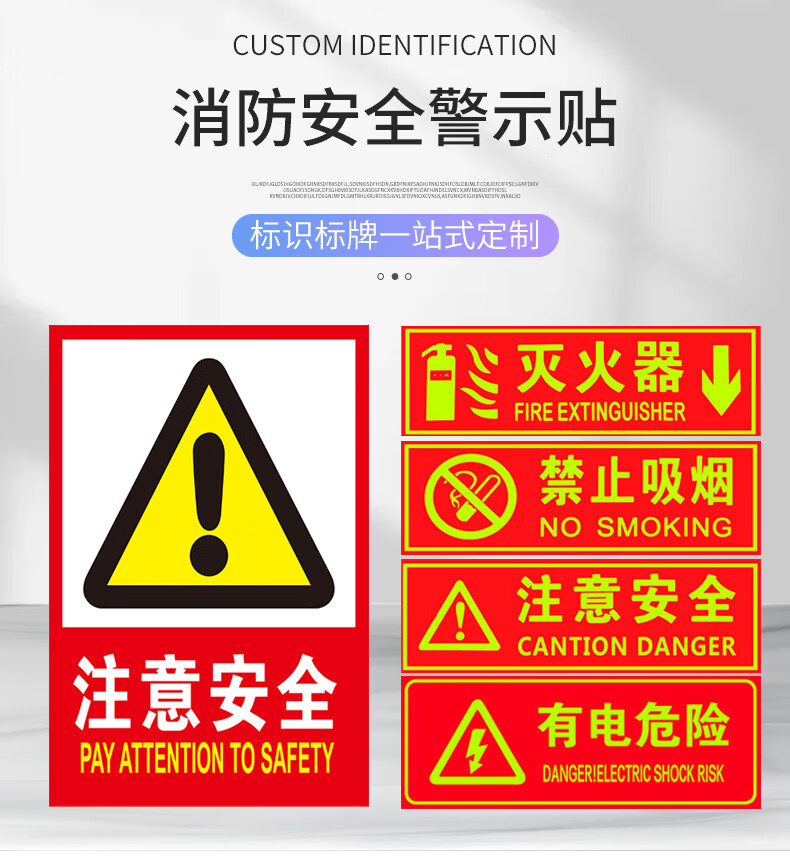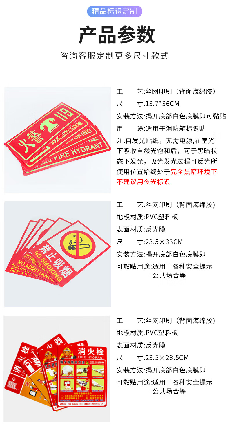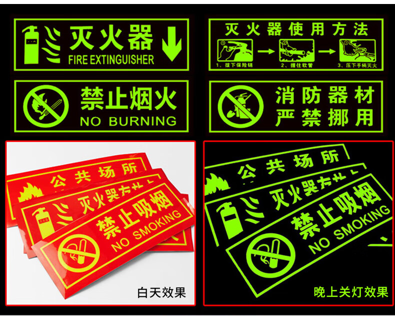 海斯迪克 注意安全 夜光消防安全警示贴 KS35-1 PVC 13.7*36cm 1张