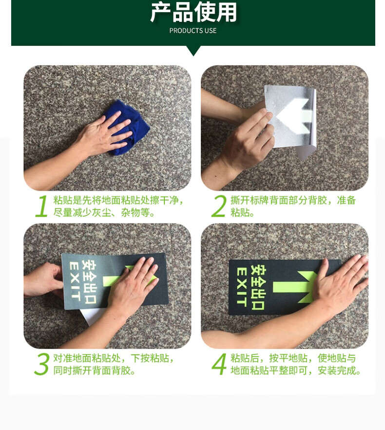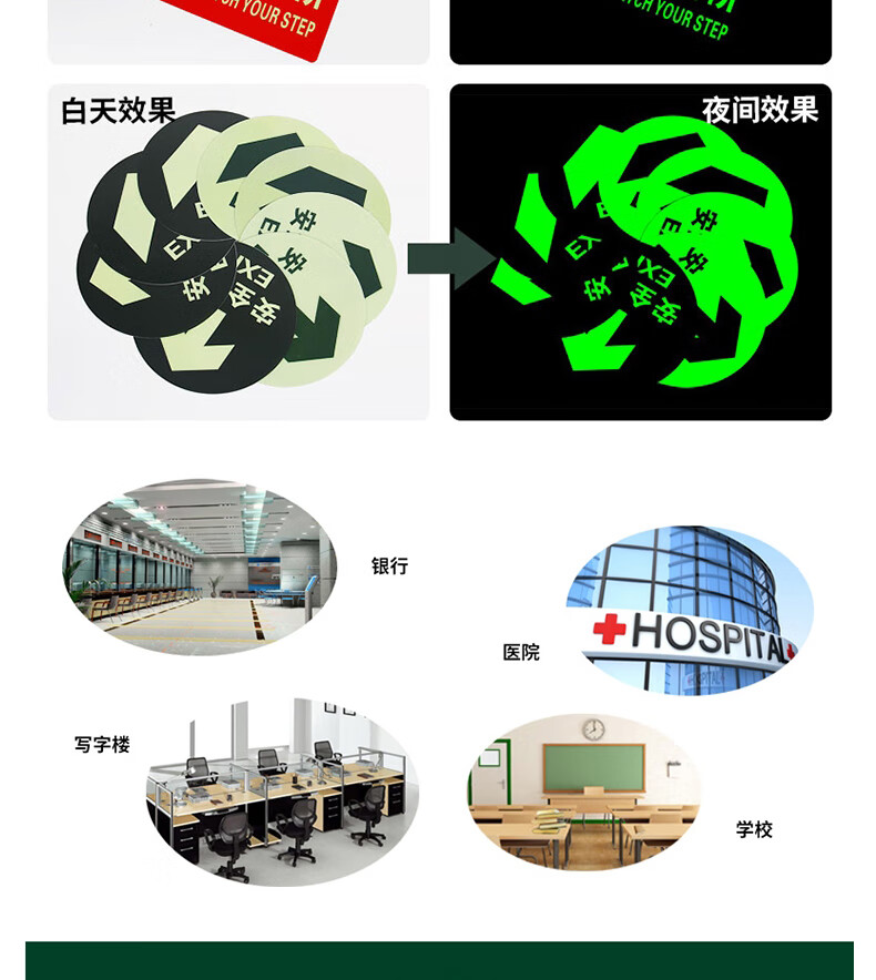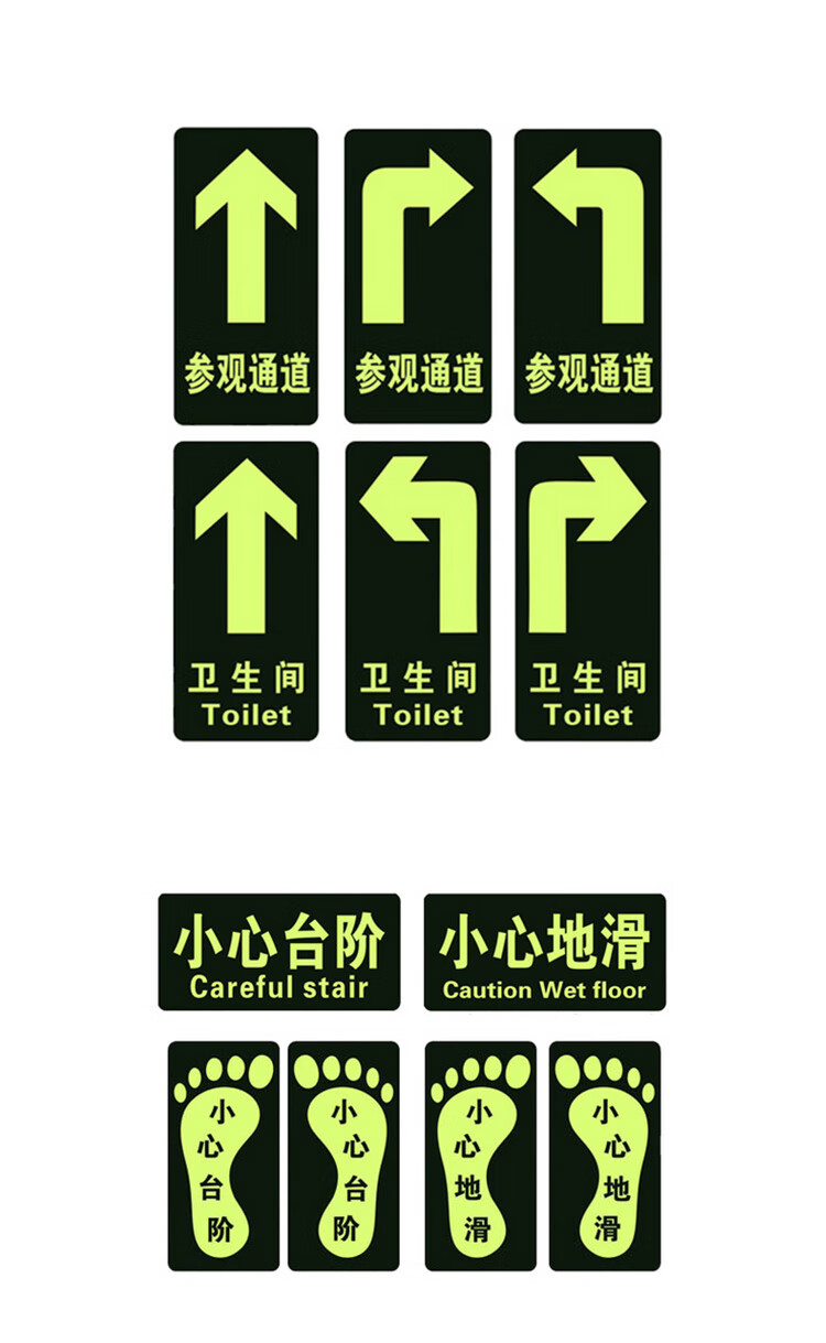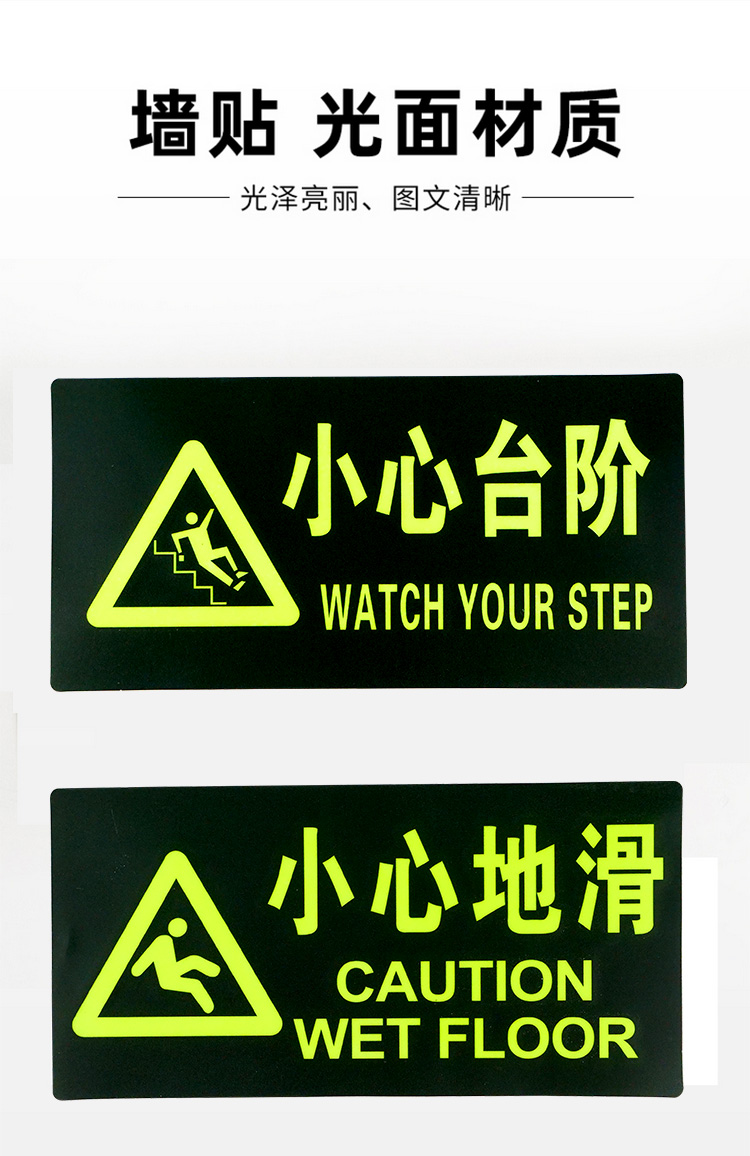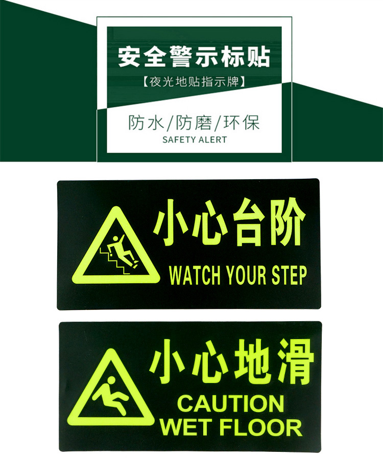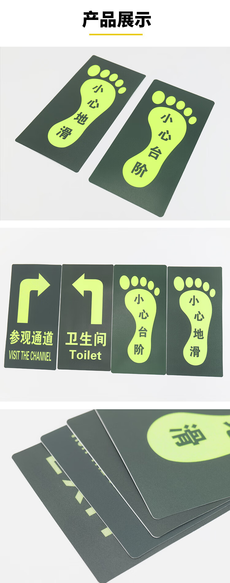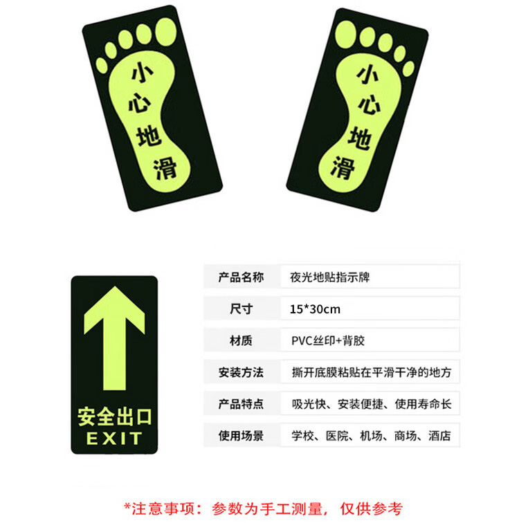 海斯迪克 小心地滑左脚 夜光消防标识牌 KS36-15 PVC 15*30cm 1张