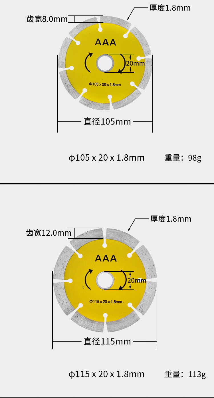 海斯迪克 混凝土切割片 KK22-1 115*20*1.8mm(AAA) 1个