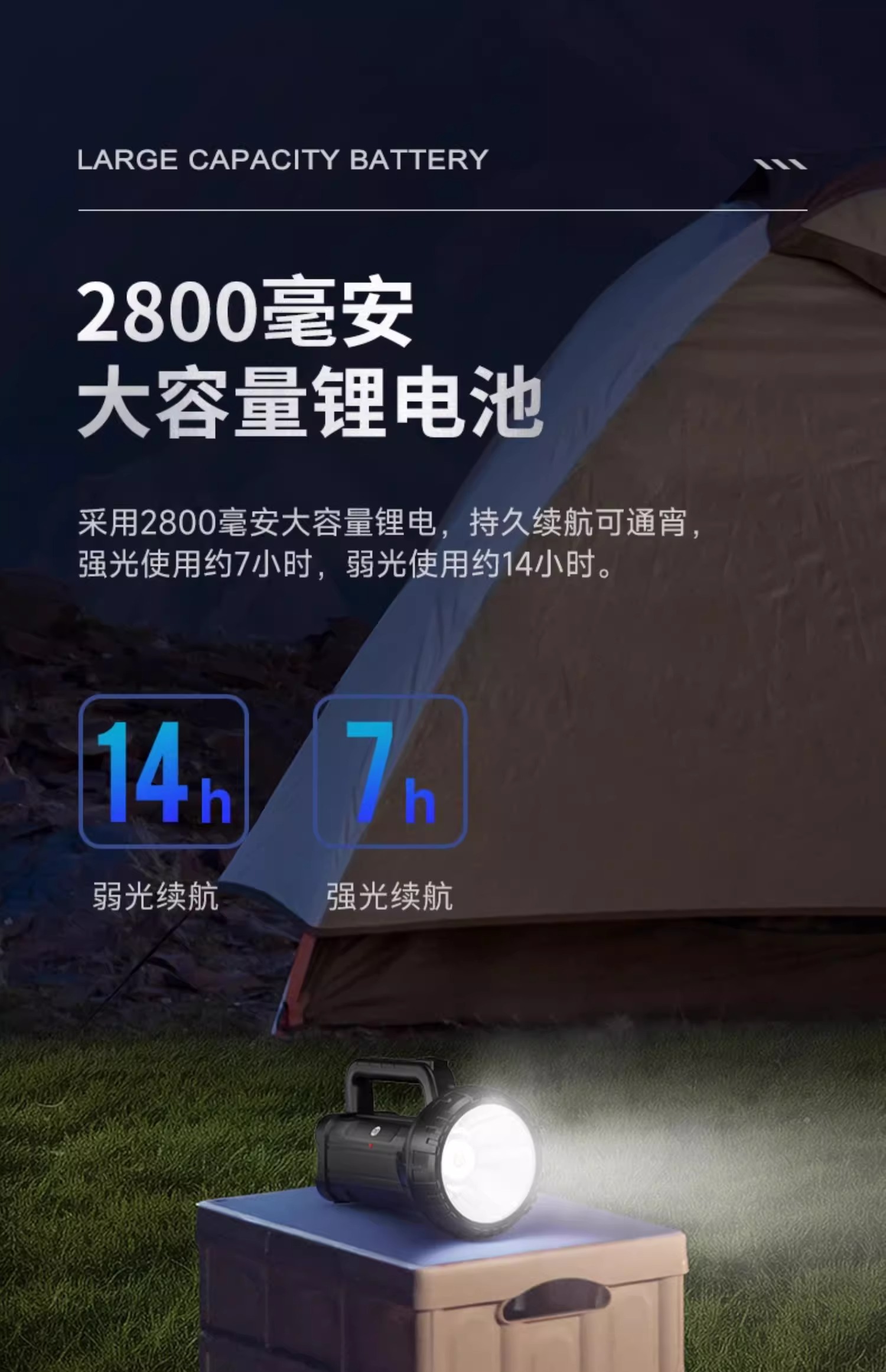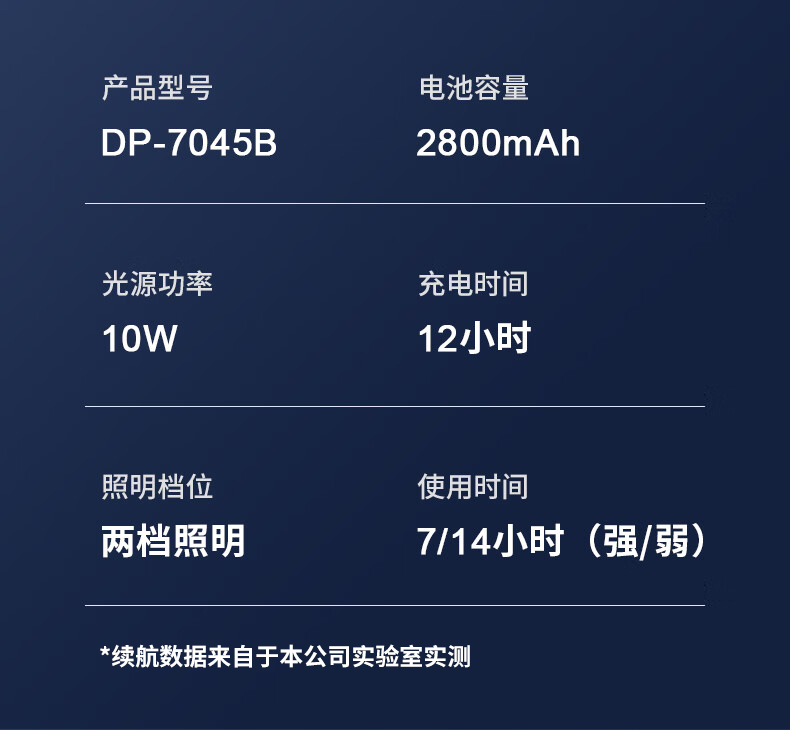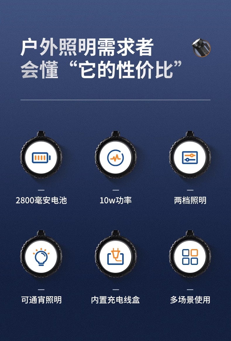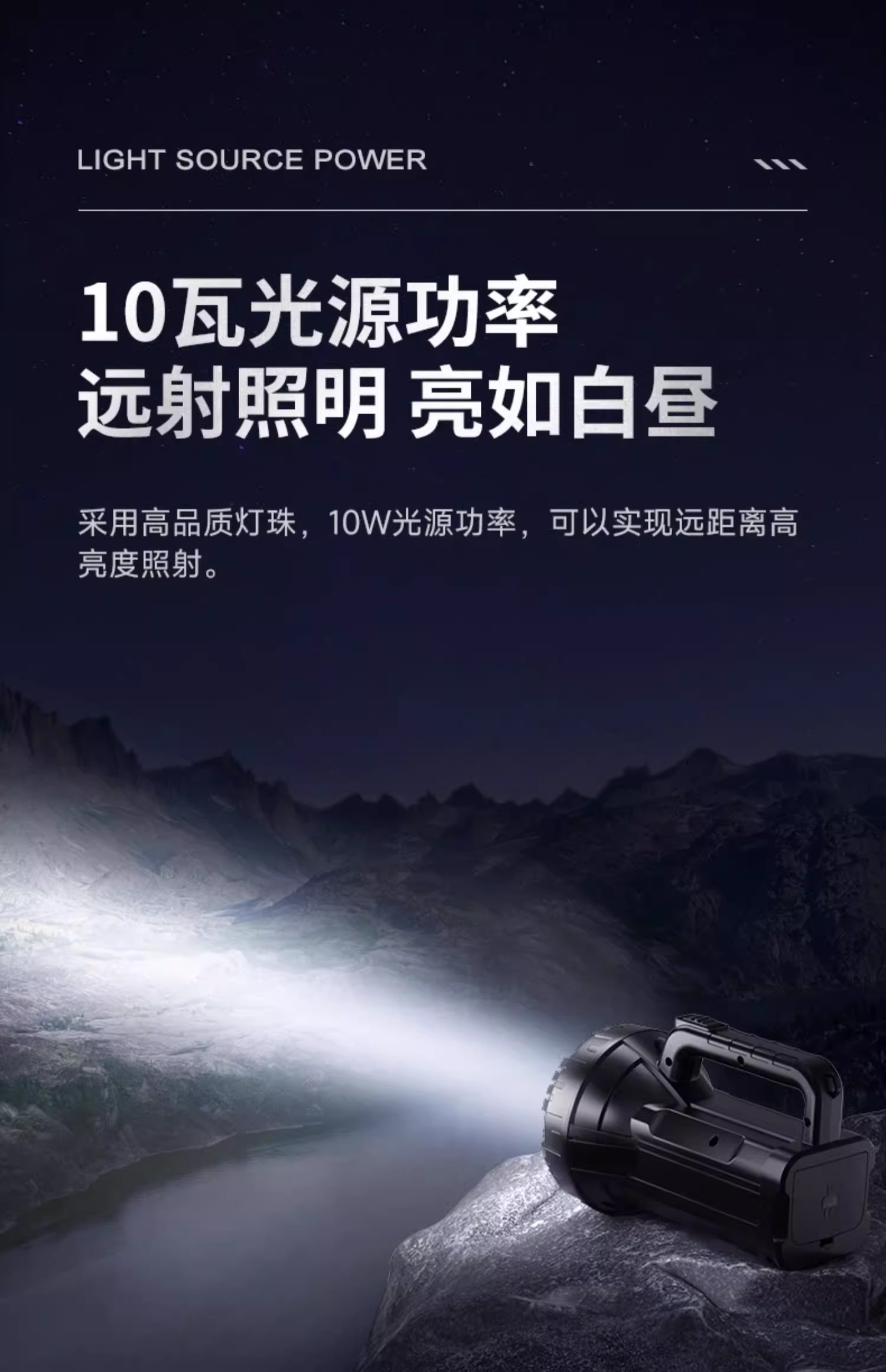 久量 LED探照灯 DP-7045B 10W爆亮+2800mAh 内置充电线 1个