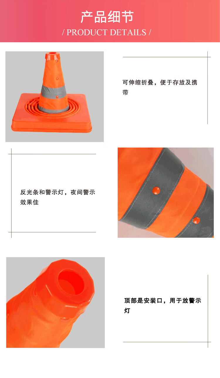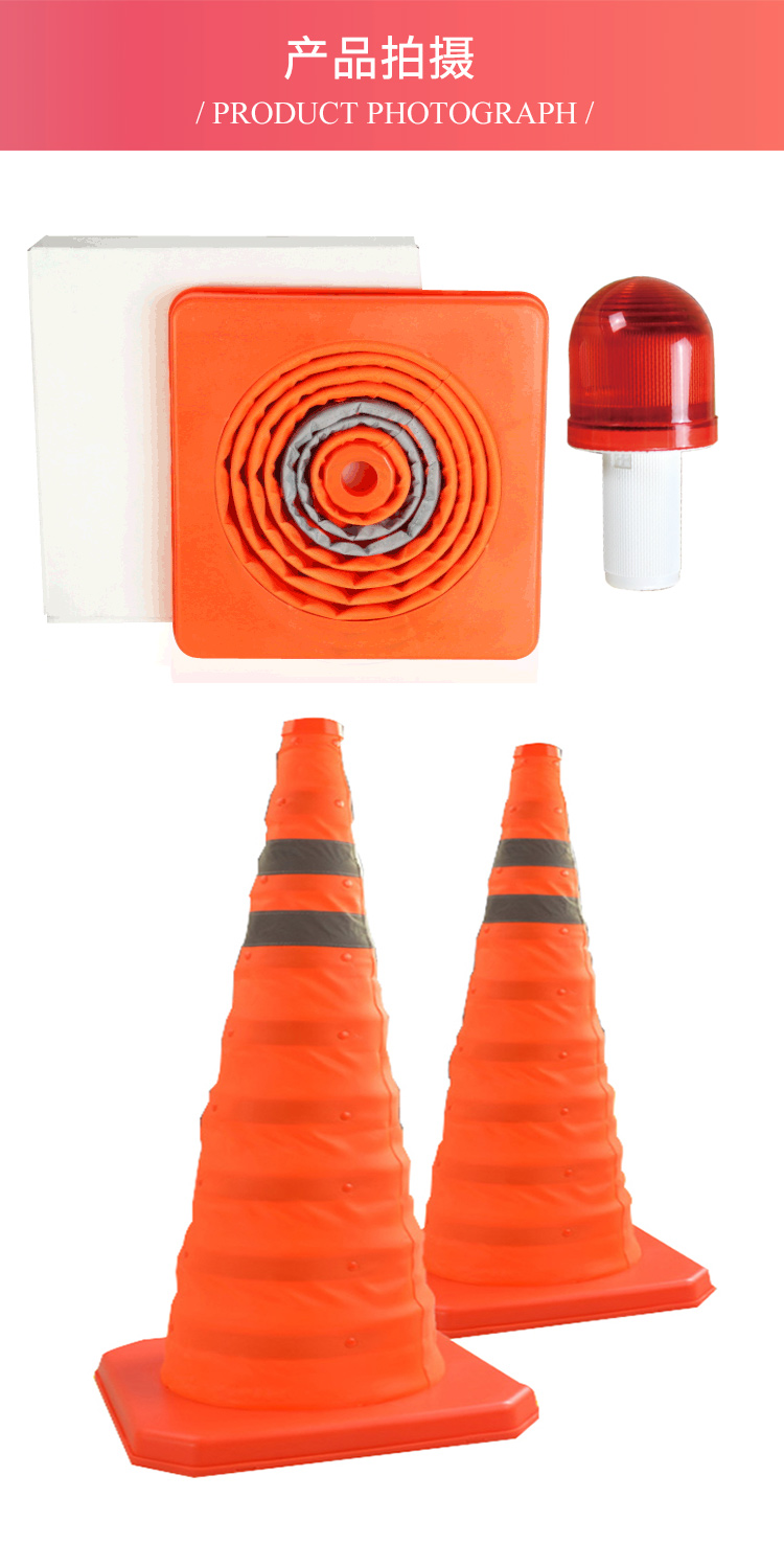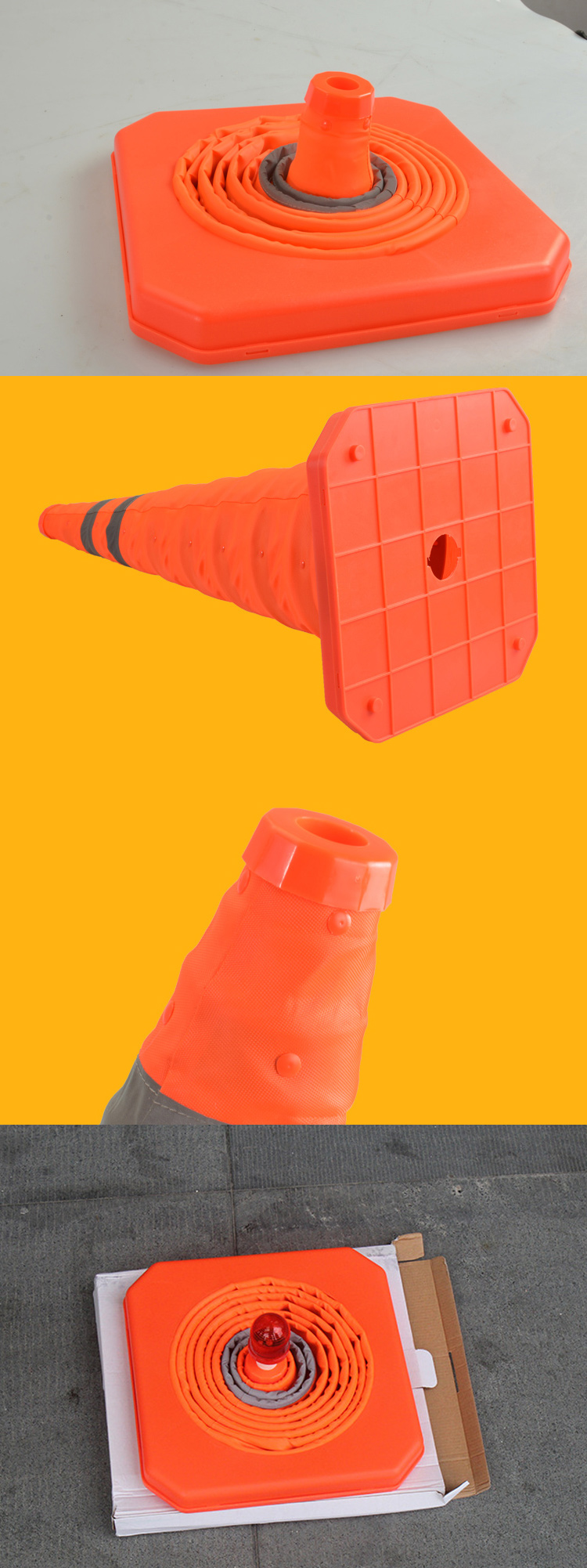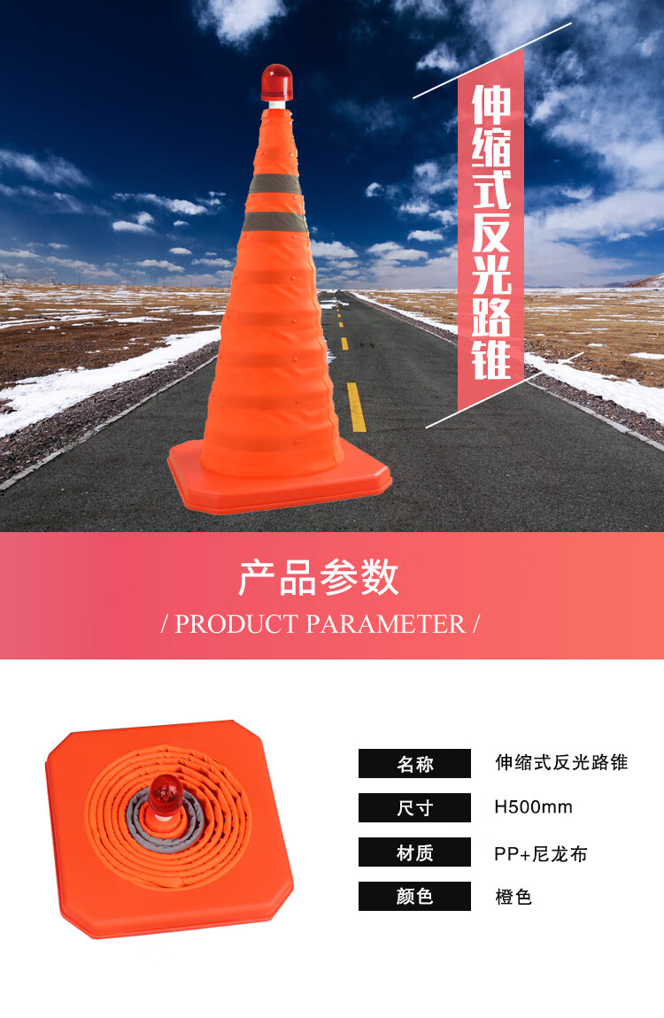 海斯迪克 伸缩反光路锥 KA32-7 PP+尼龙布 橙色 带警示灯 1个
