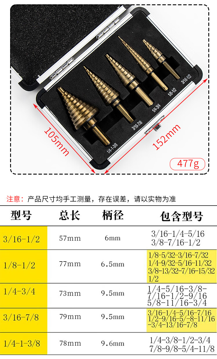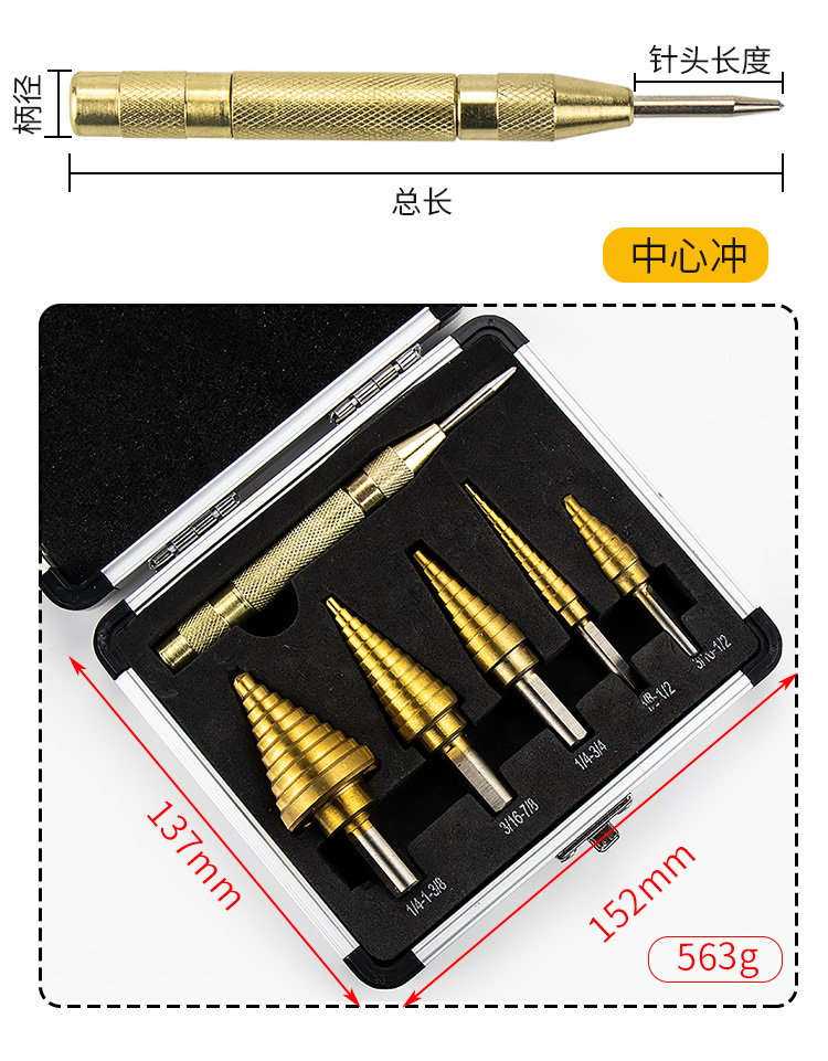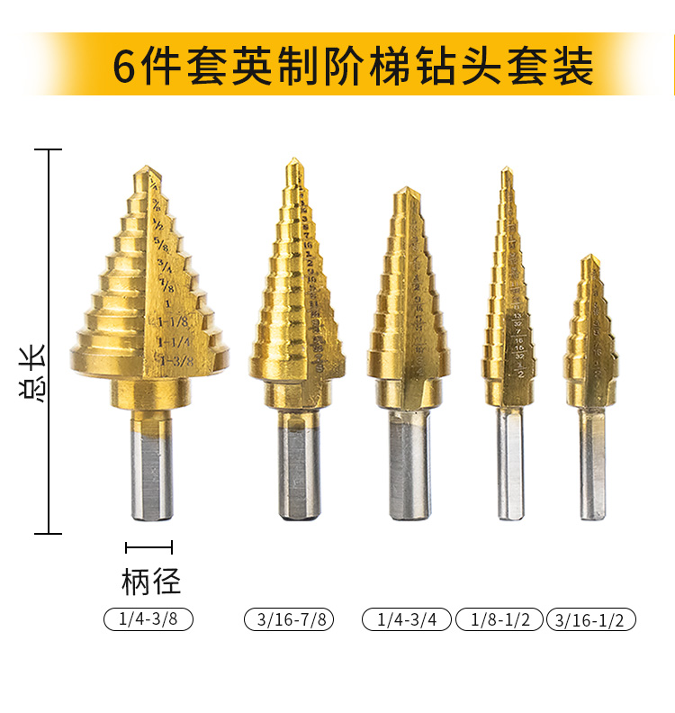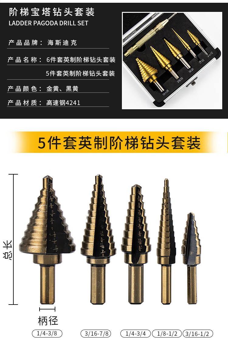海斯迪克 三角柄直槽阶梯钻套装 KK27-1 英制5PC 1盒