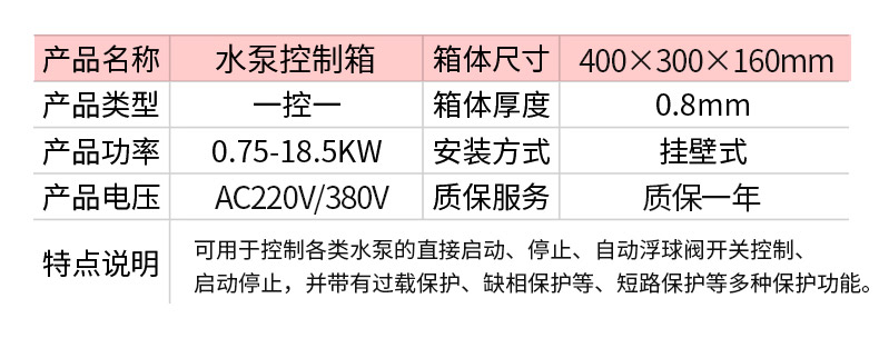正泰 水泵控制箱 一用一备水泵 380V 7.5KW 1个
