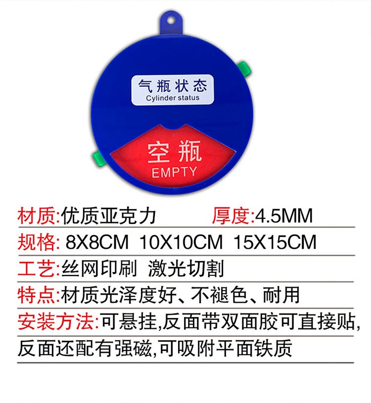 海斯迪克 气瓶状态E款 医院氧气筒瓶标识牌 KS118-5 亚克力 8*8cm厚4.5mm 1个