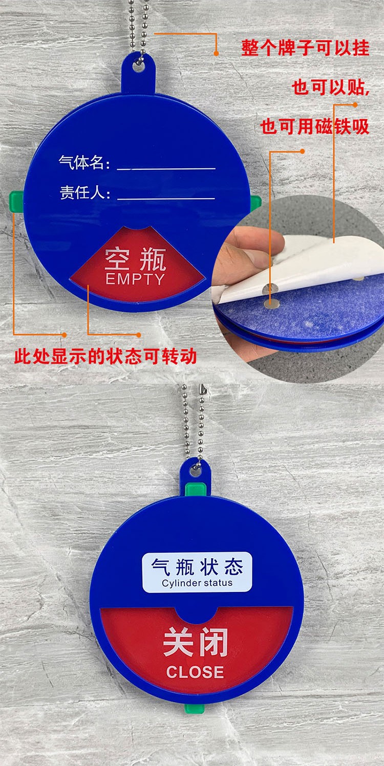 首页>标识标签>警示标识>通用标识>医疗标签>海斯迪克 气瓶状态E款 医院氧气筒瓶标识牌