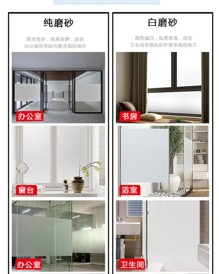海斯迪克 防窥玻璃贴膜 KS122-8 PVC 白磨砂 120cm*1m 1卷