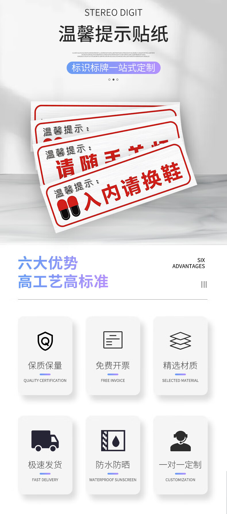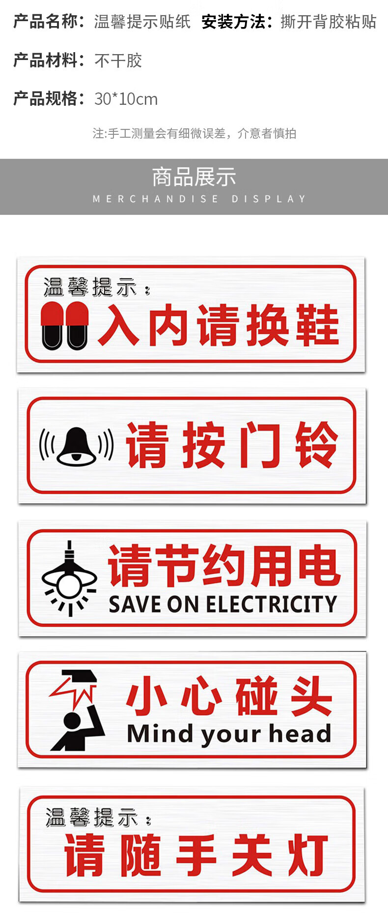 海斯迪克 入内请换鞋 警示标识贴 KS124-6 不干胶 30*10cm 1个