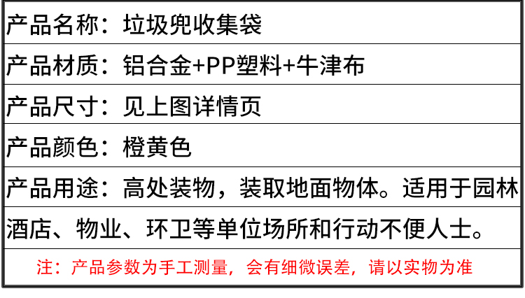 海斯迪克 环卫防风垃圾布斗 KQ96-1 方口 便携收集袋 1个