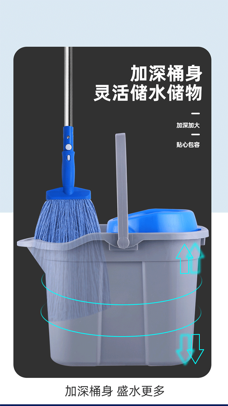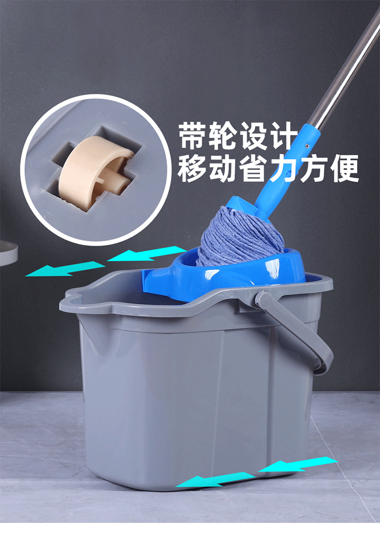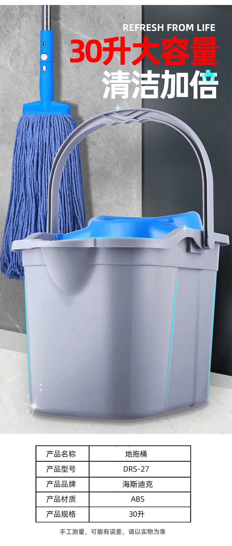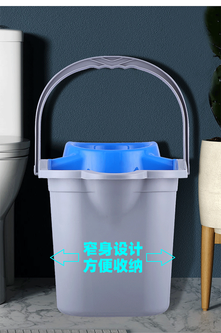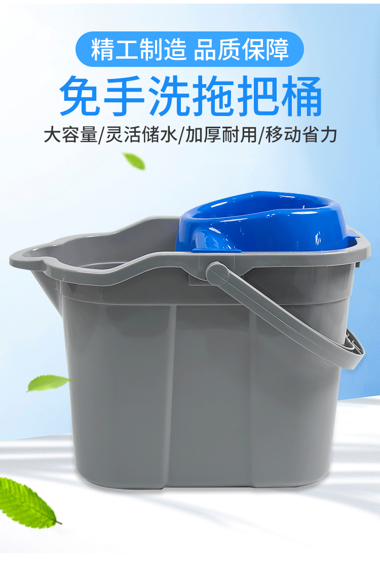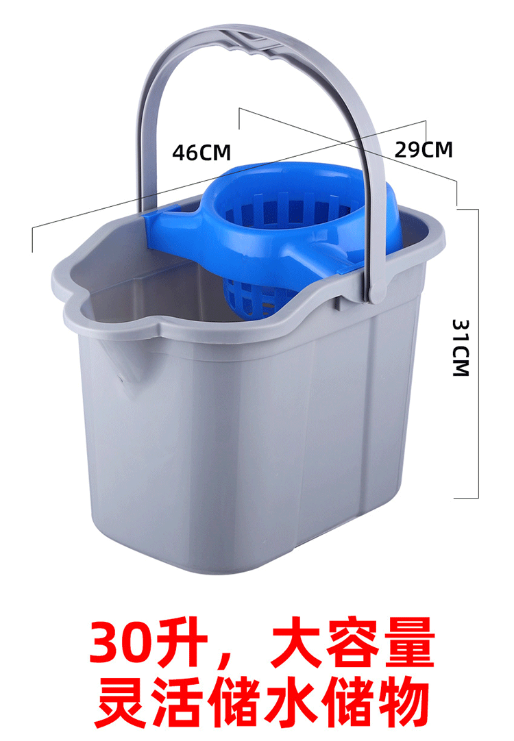 海斯迪克 手提塑料拖把桶 KQ101-1 46*29*31cm 灰蓝色 1个