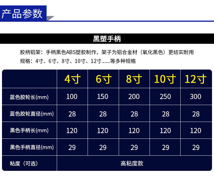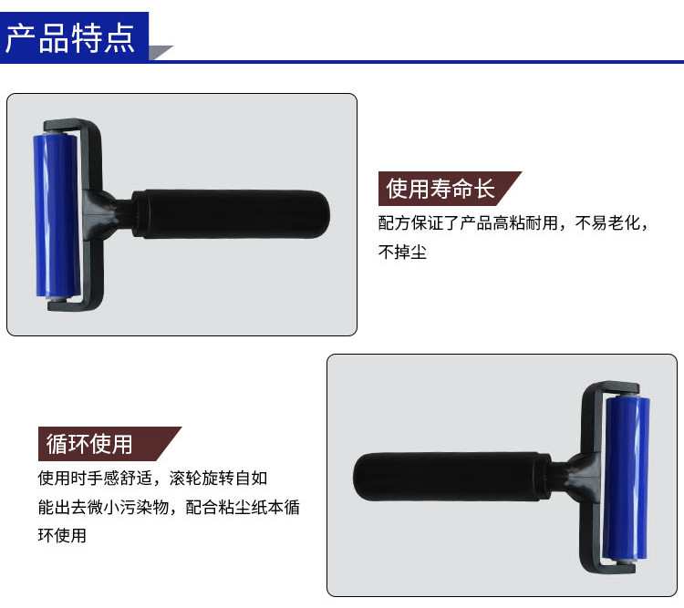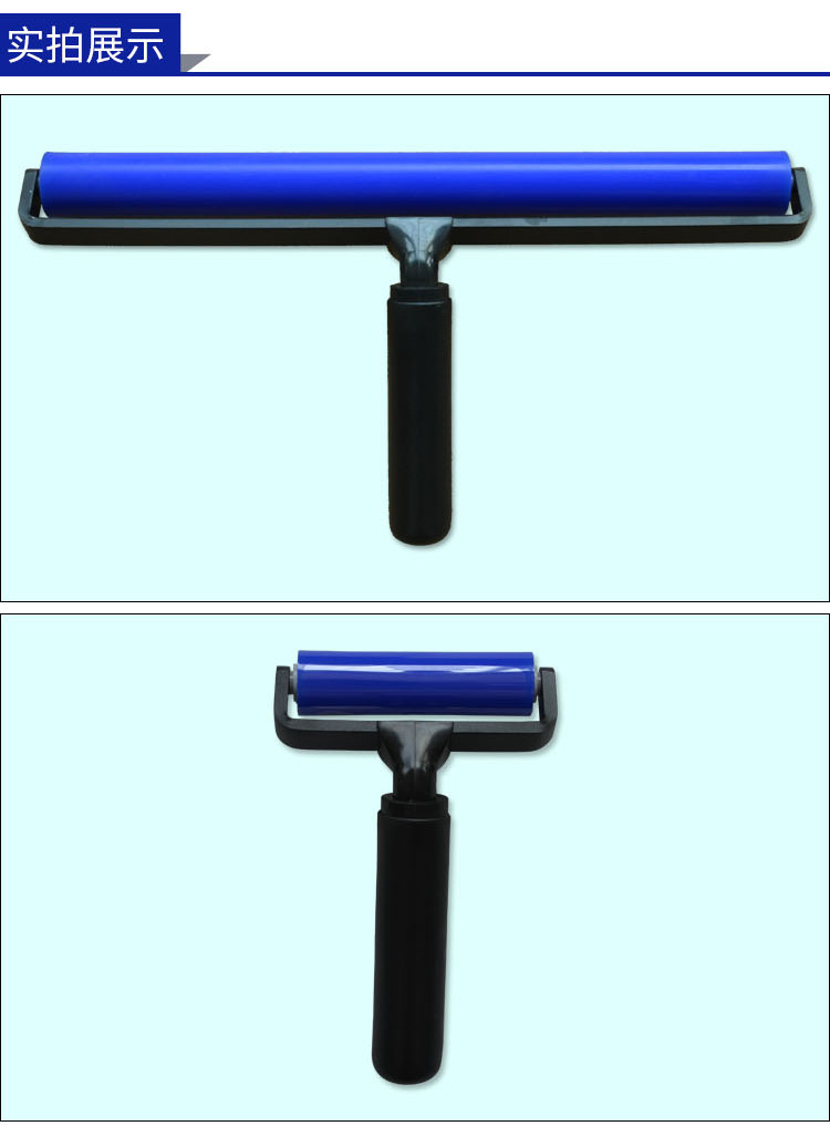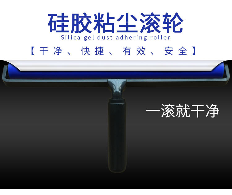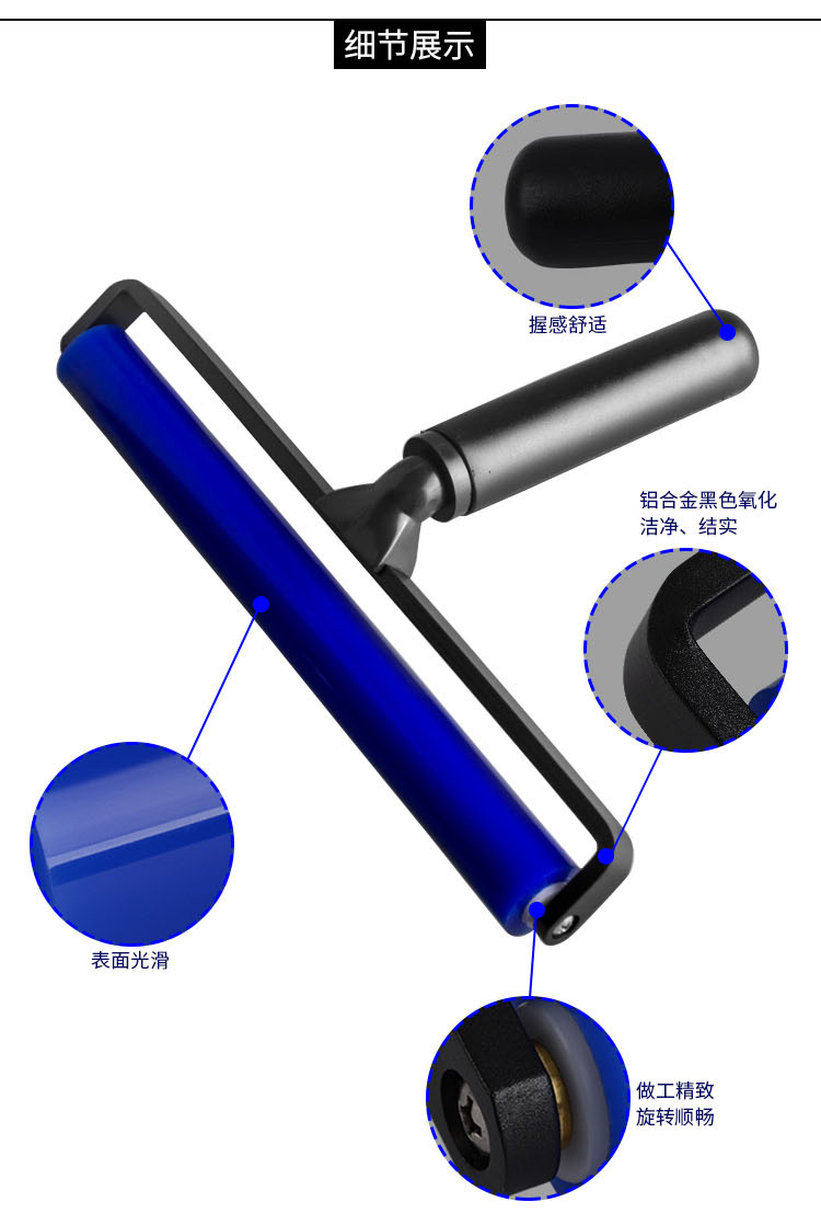 海斯迪克 蓝色硅胶除尘滚轮 KQ107-3 8寸 黑塑手柄20cm 1个