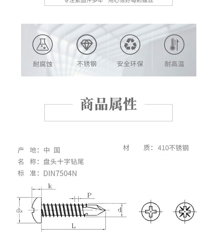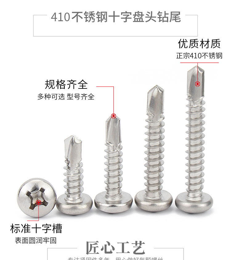 • 商品名称:海斯迪克 410不锈钢十字槽盘头钻尾螺丝
