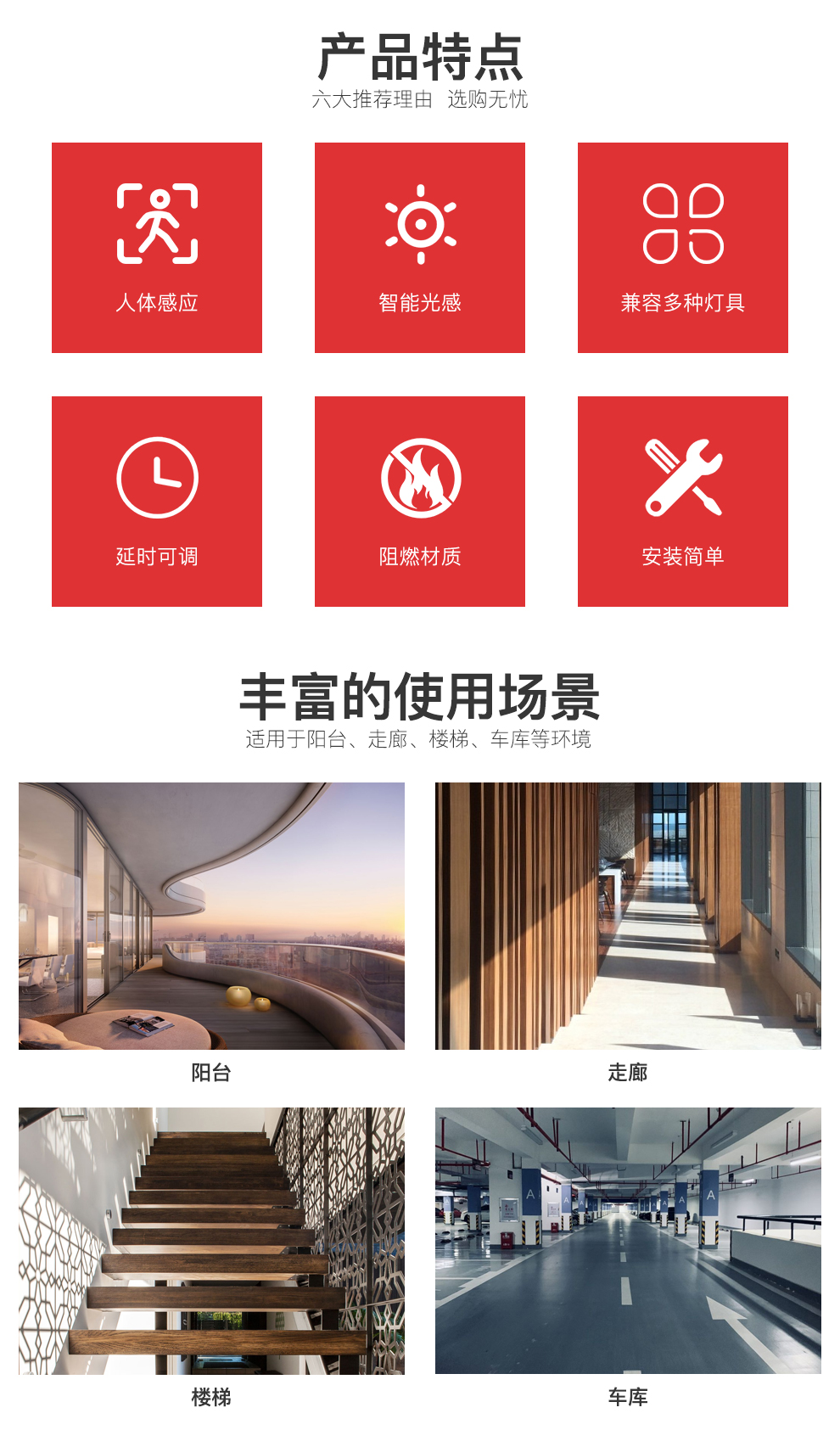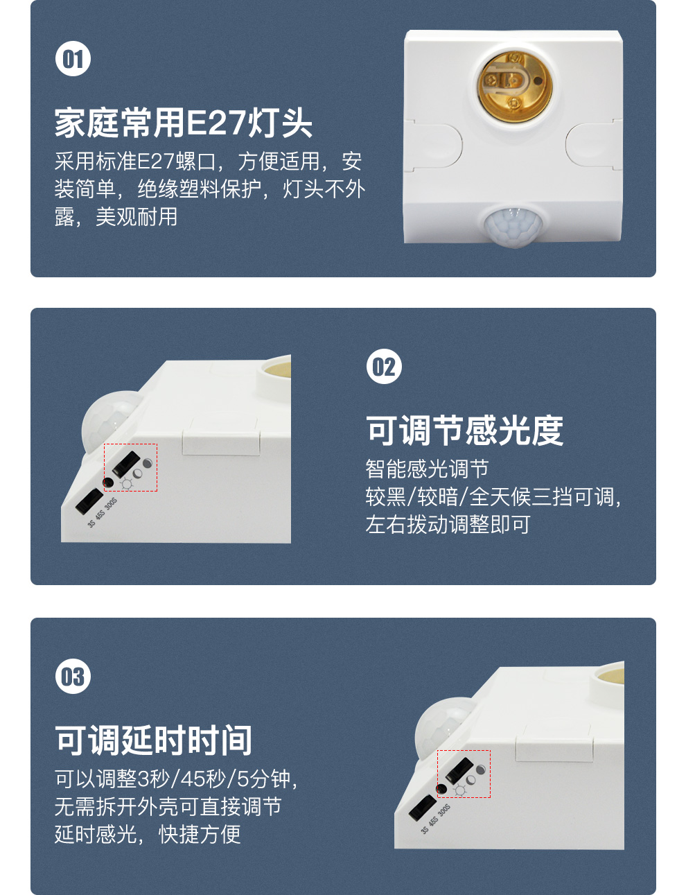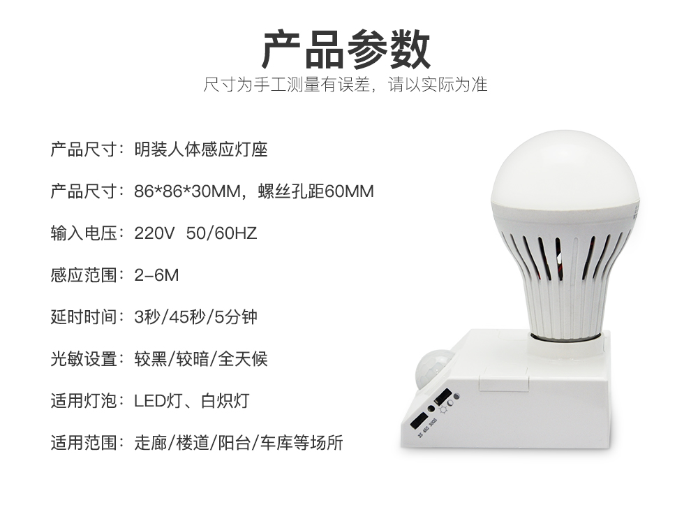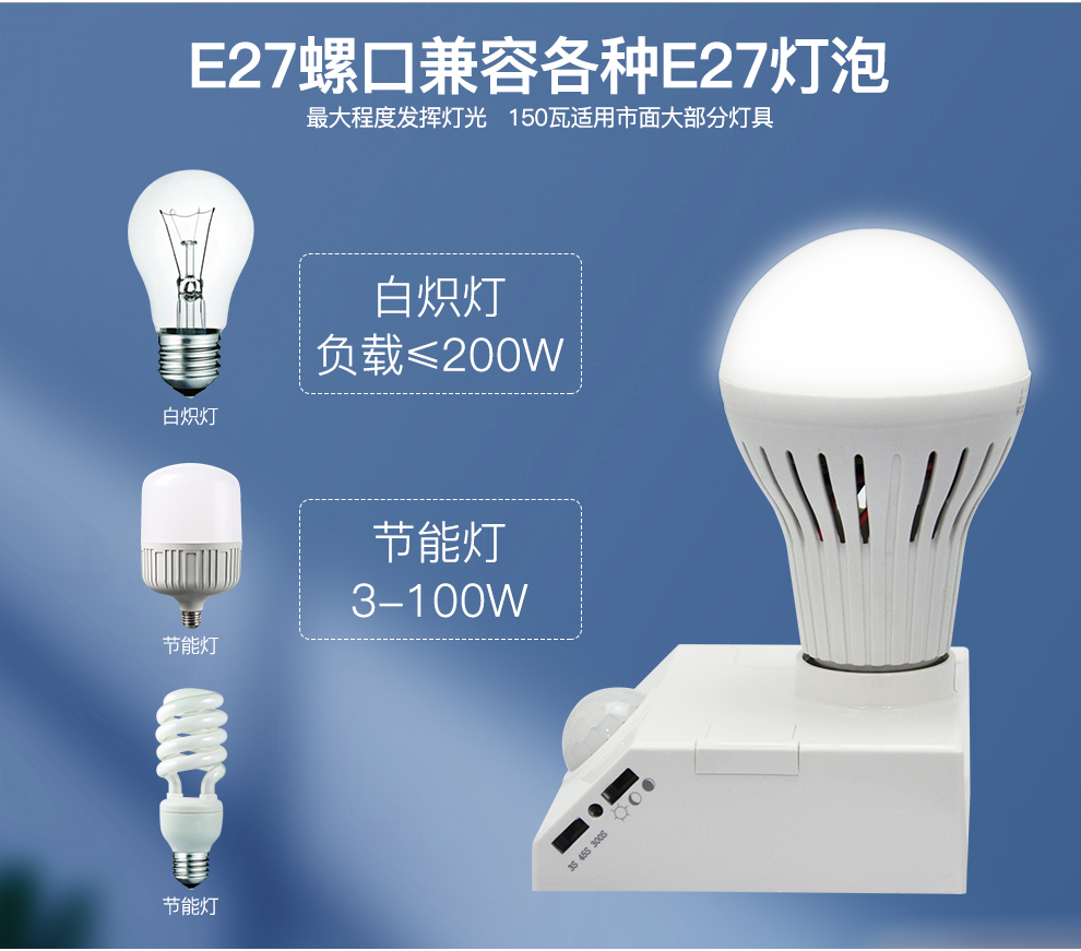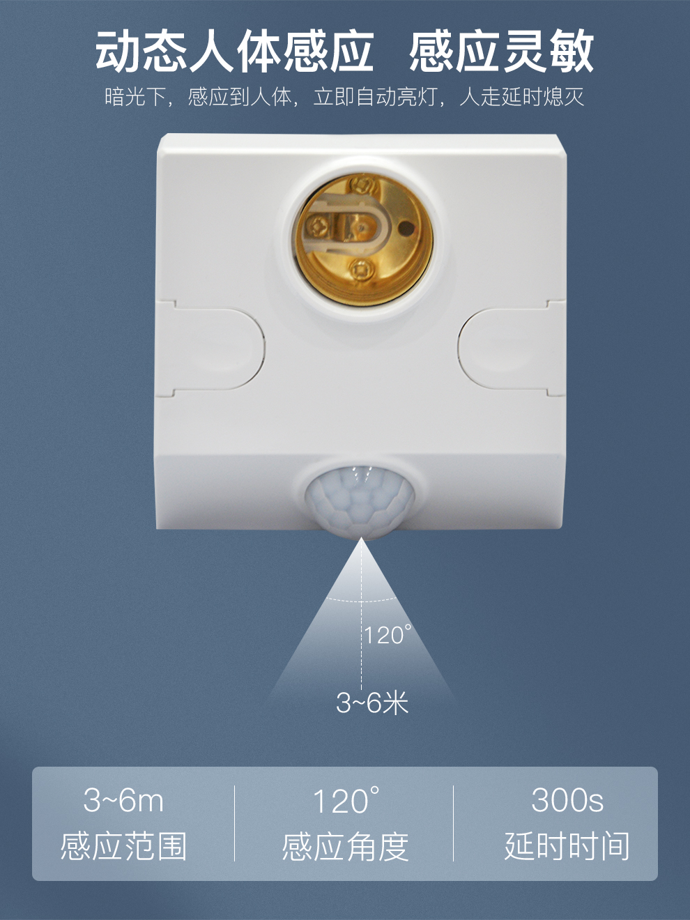 西野 智能LED人体感应灯座 E27 86*86mm 1个