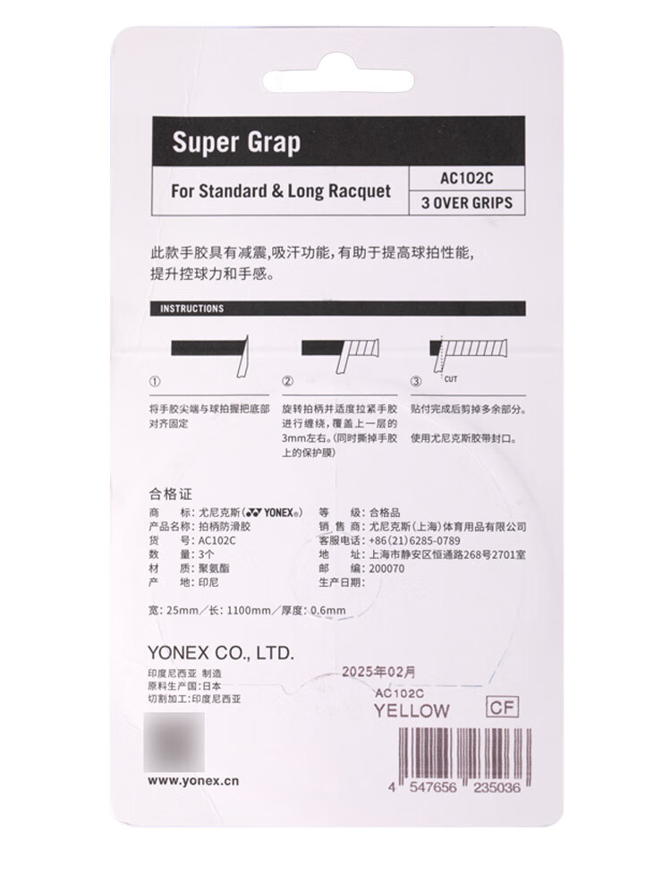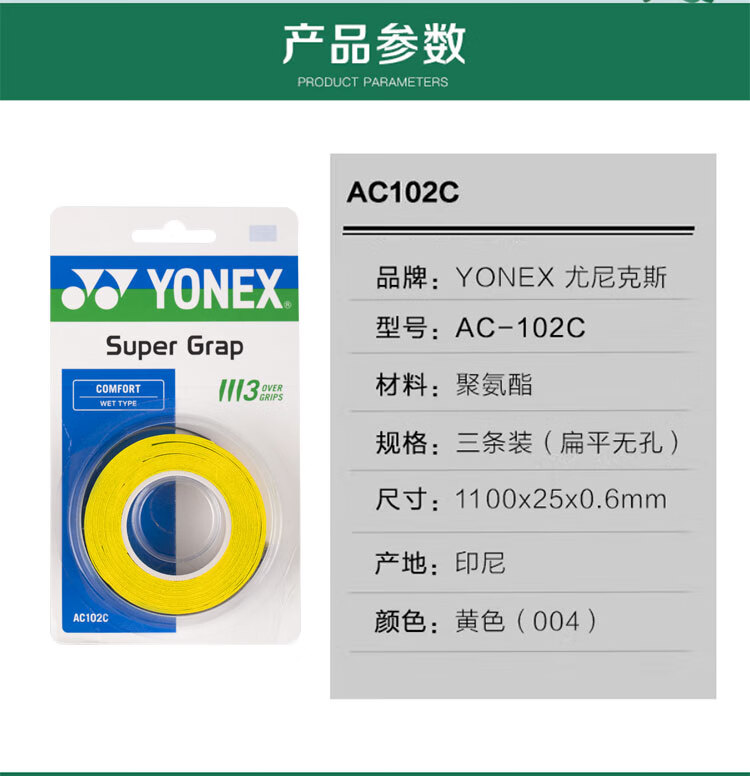 尤尼克斯 羽毛球手胶 AC-102C-004 黄色 1卡