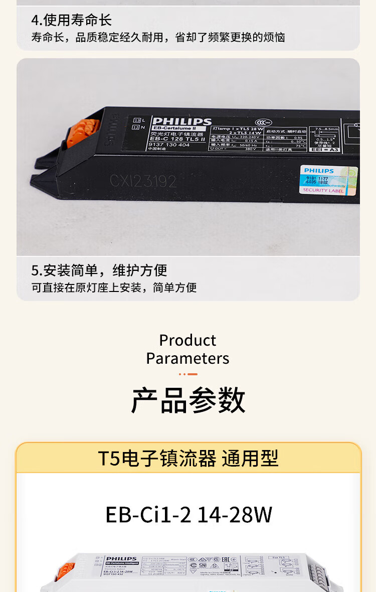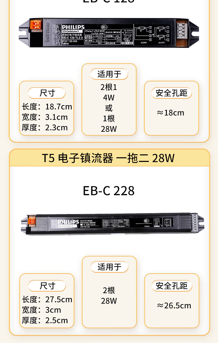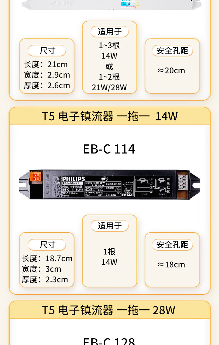飞利浦 T5电子镇流器 EB-C 128 1*28W 一拖一 1个
