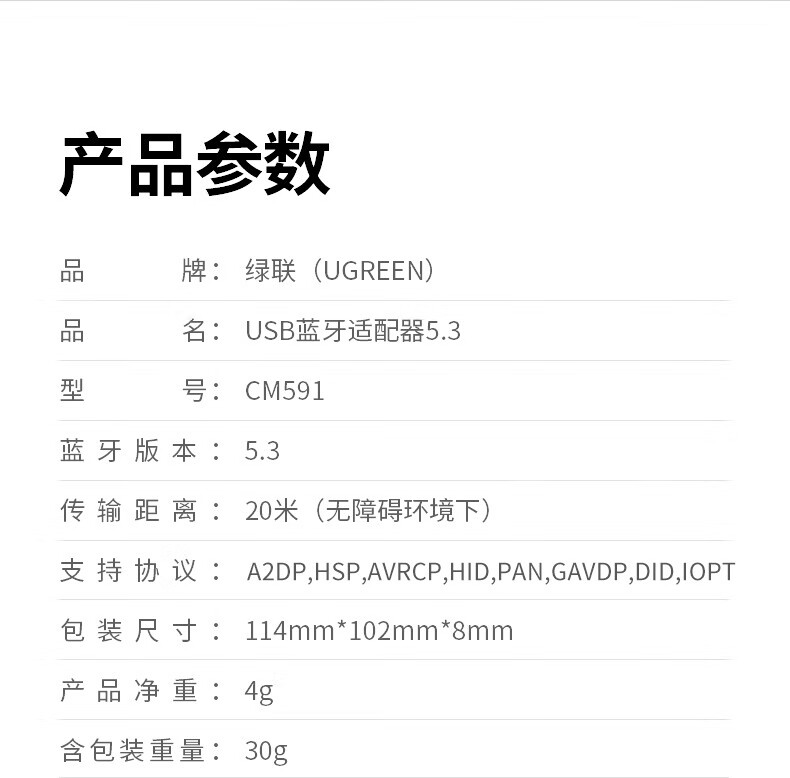 绿联 USB蓝牙适配器 90225 5.3发射器 1个