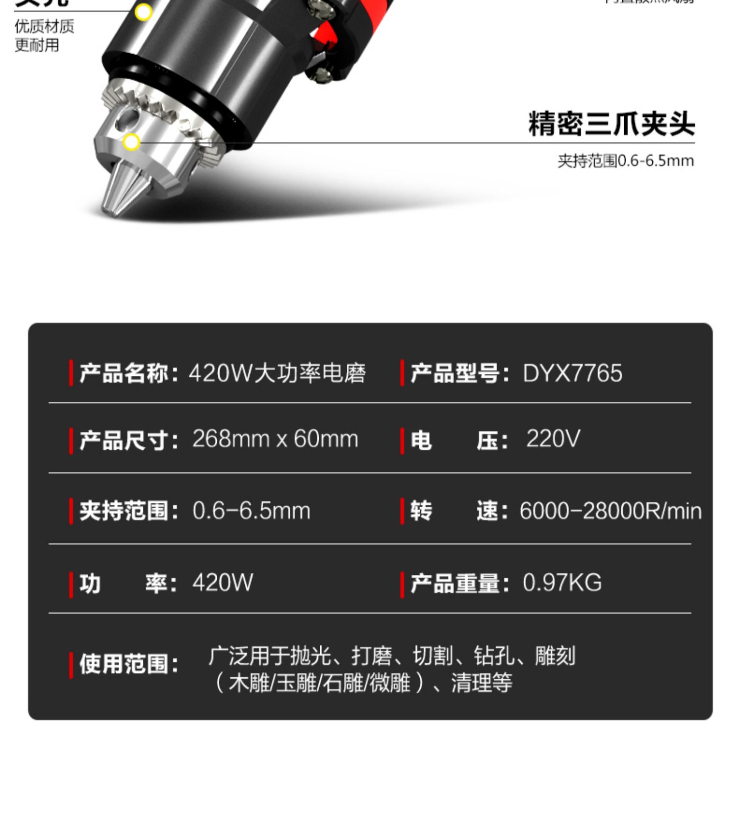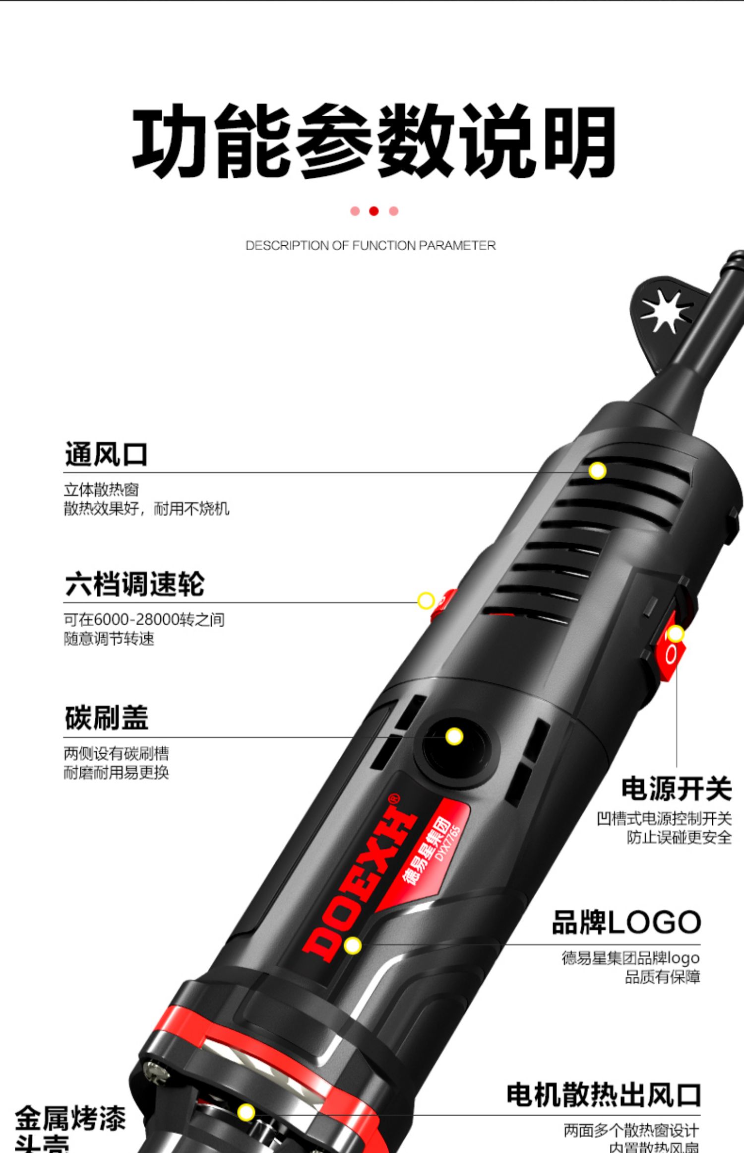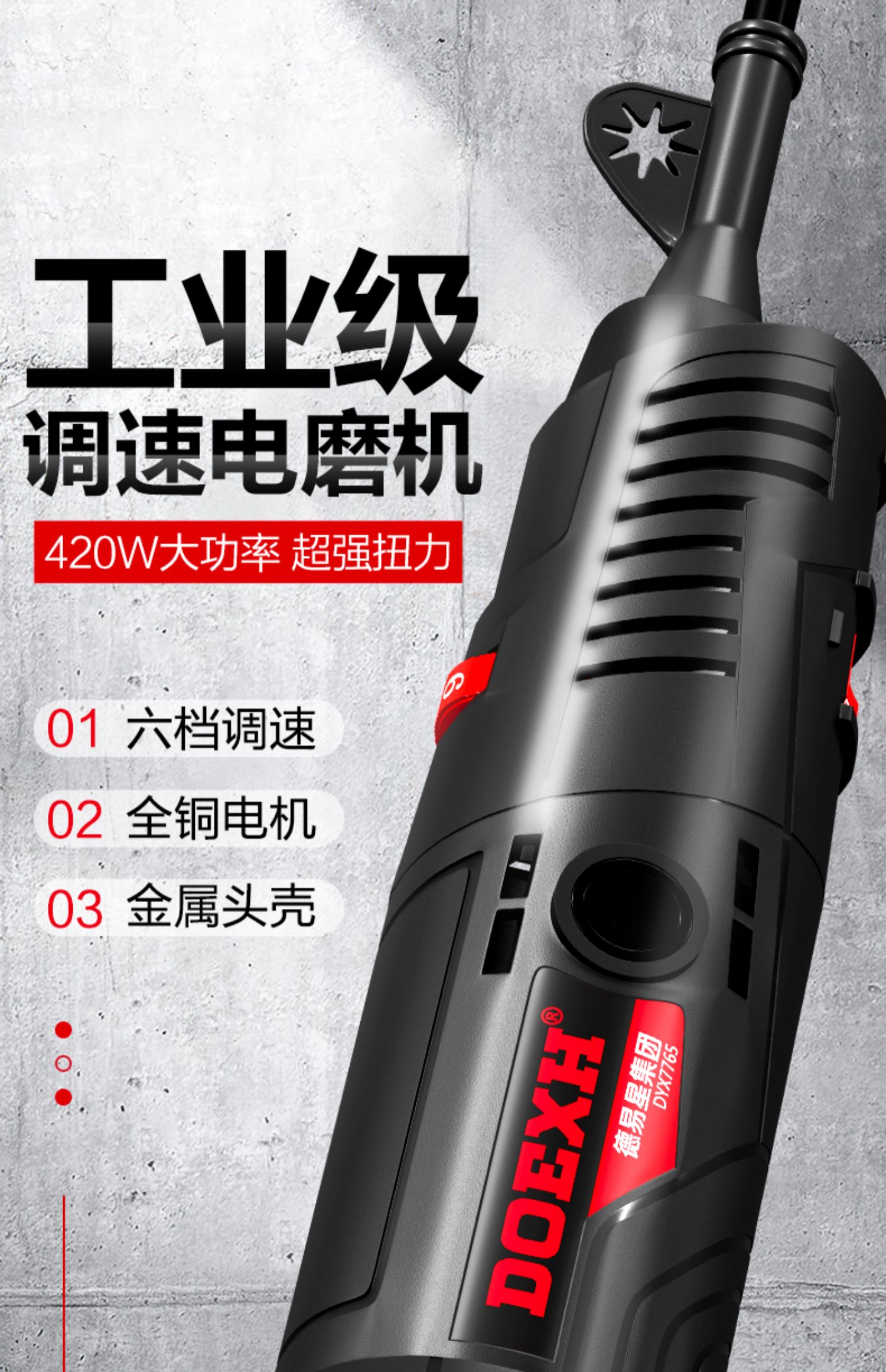 德易星 电磨机 DOXEH-400W 6档调速 手持式 6.5mm 1个