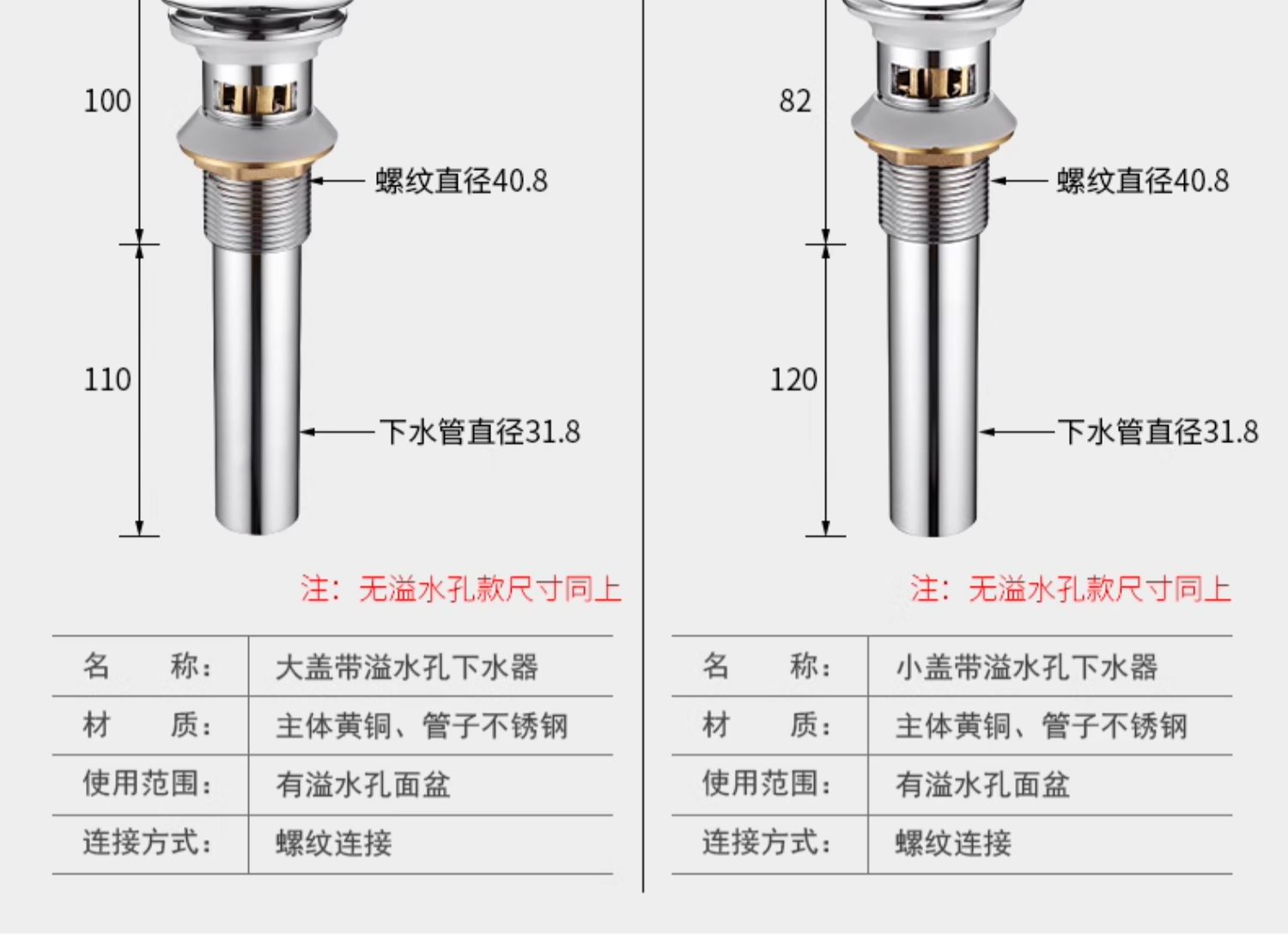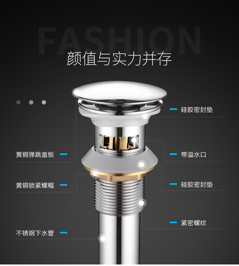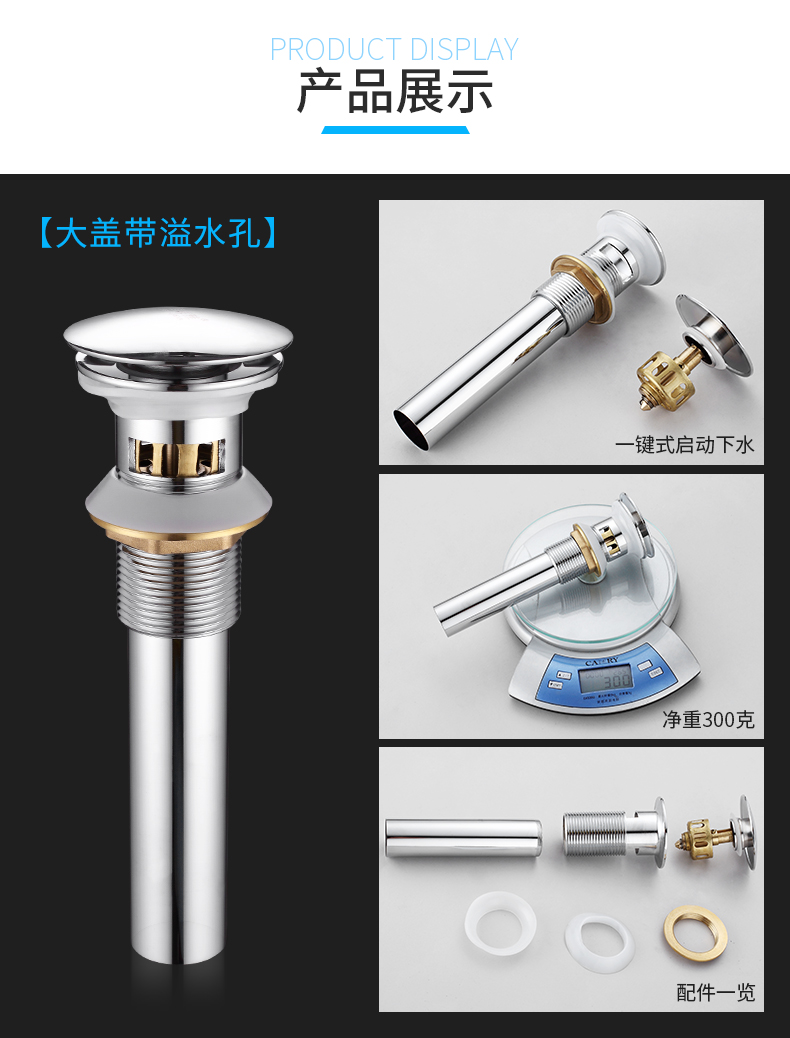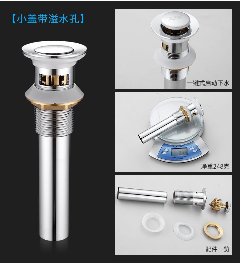 恒莱雅 洗手盆配件下水器 大盖带溢水口 1个