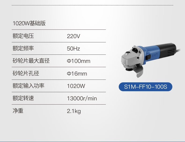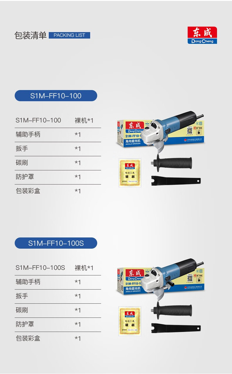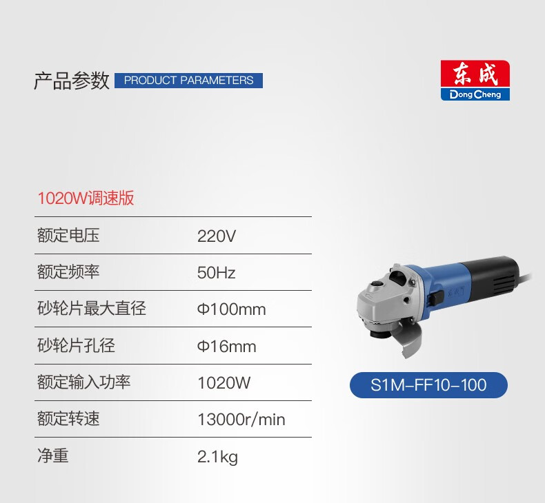 东成 插电式电动角向磨光机 S1M-FF10-100S 220V 1020W 13000r/min 1台