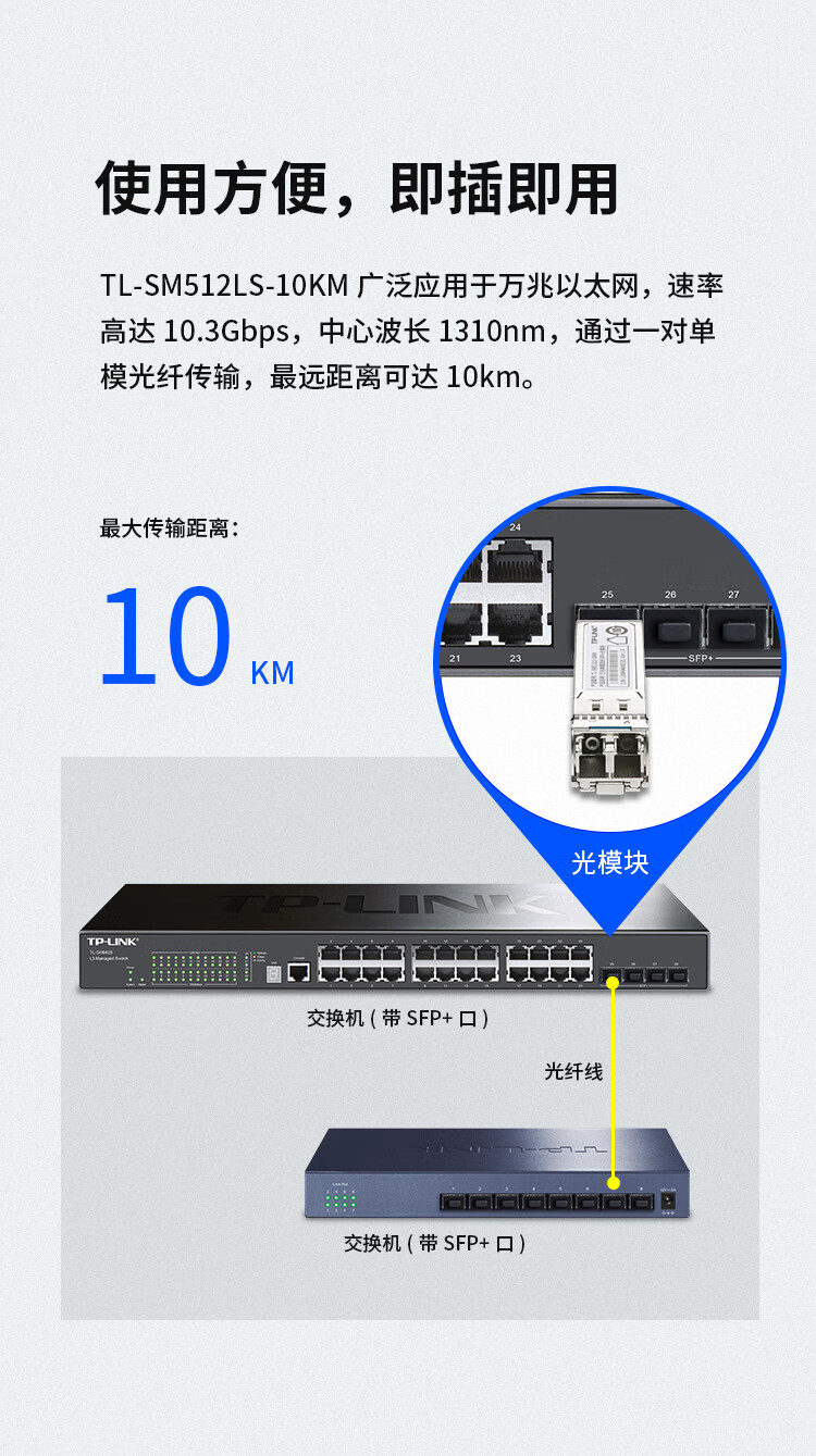 普联 万兆单模双纤SFP+光模块 TL-SM512LS-10KM 10km稳定传输 1个