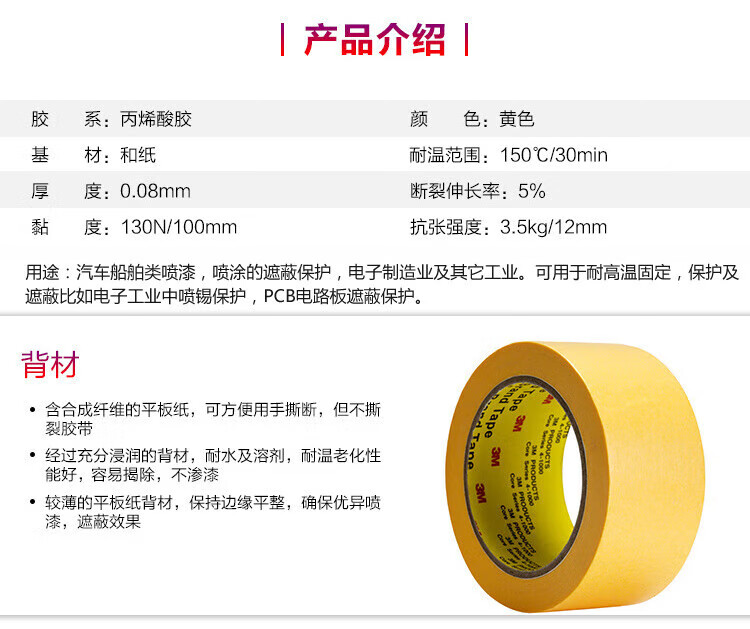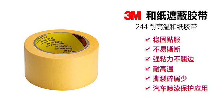 3M 和纸遮蔽胶带 244 黄色 40mm×50m 1卷