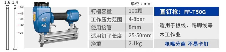东成 气动直钉枪 FF-T50G 适用钉子长度25-50mm 1把