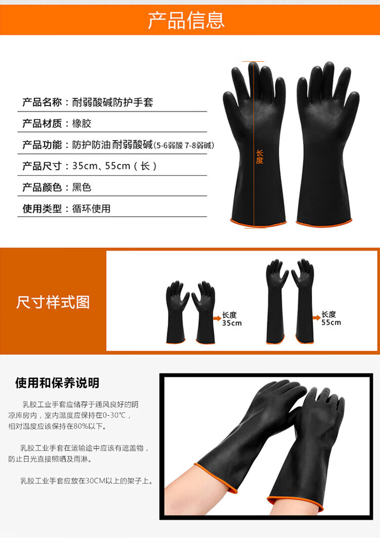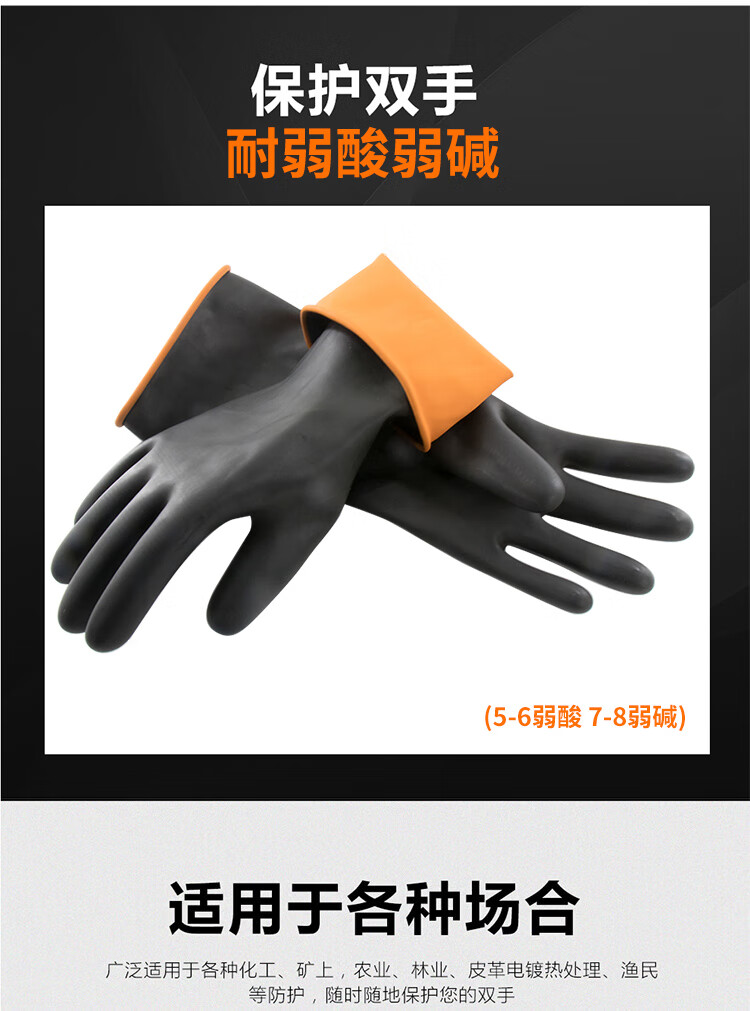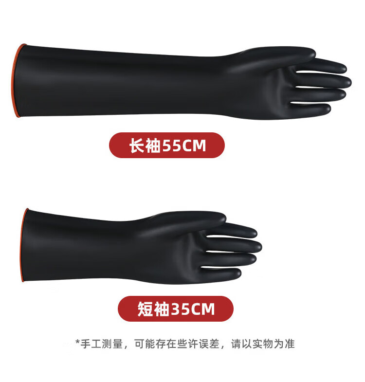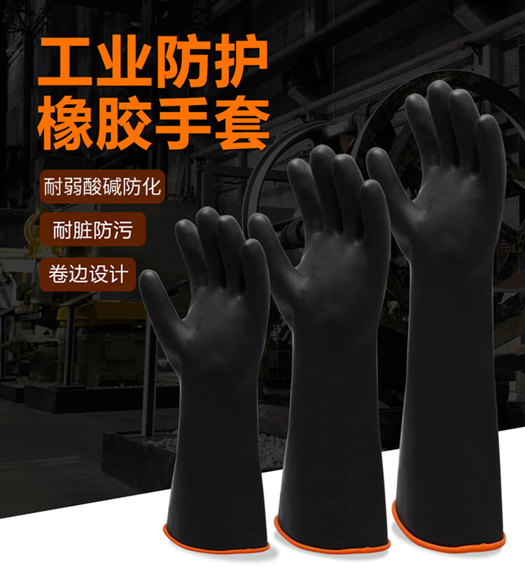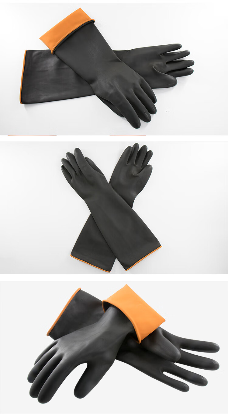 海斯迪克 黑色耐酸碱防护橡胶手套 KG56-2 45cm 1双