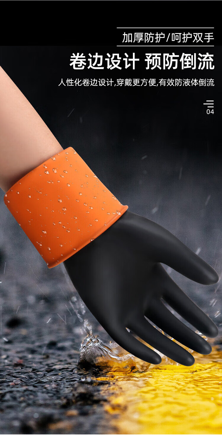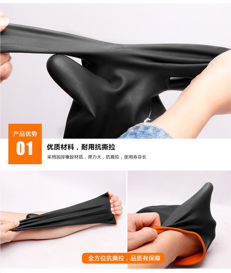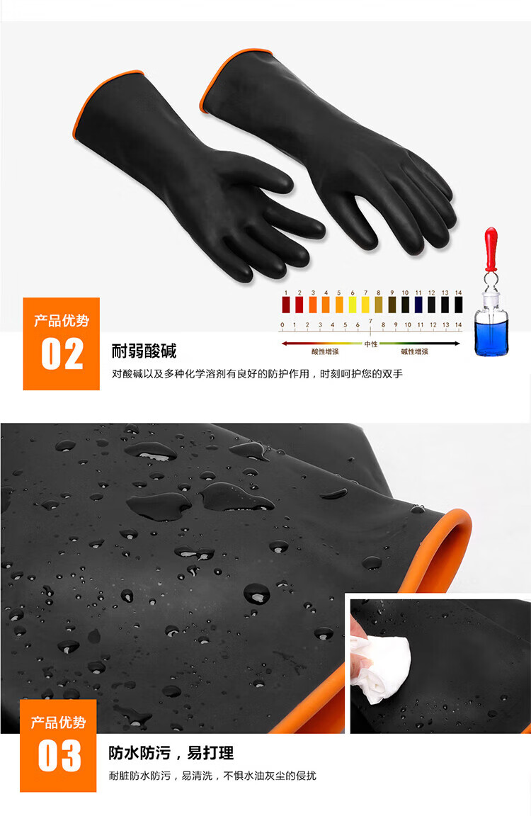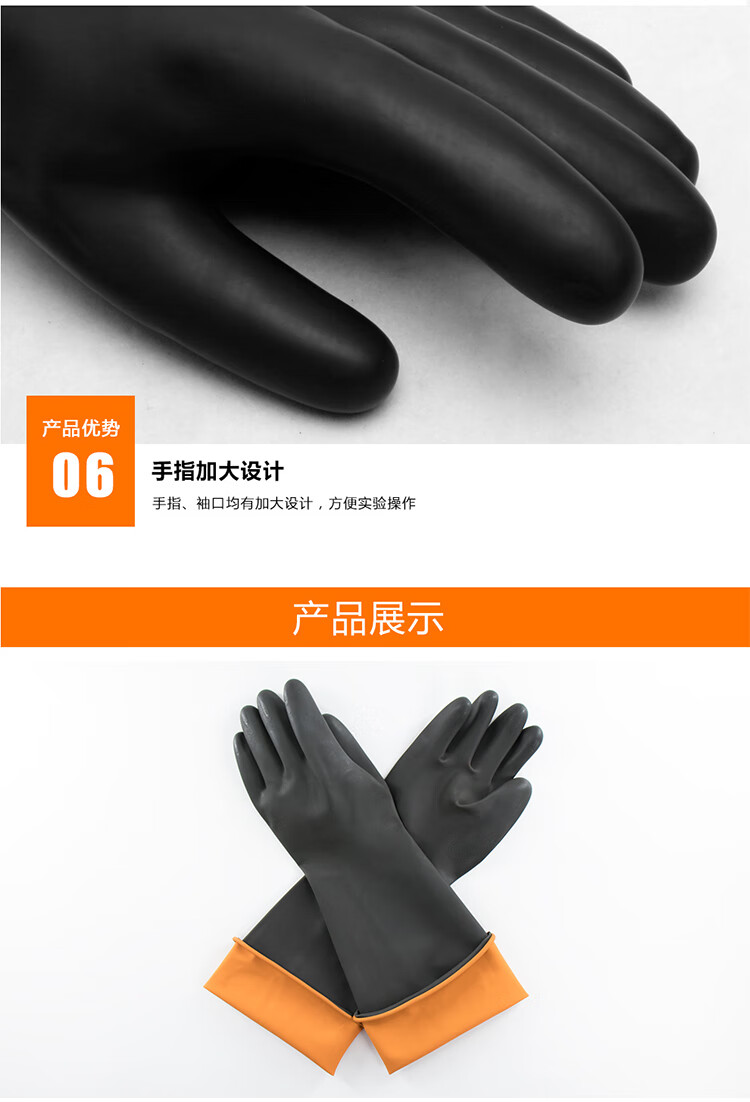 海斯迪克 黑色耐酸碱防护橡胶手套 KG56-2 45cm 1双