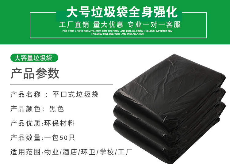 国产通用 黑色平口垃圾袋 80*100cm 2.5丝 50只 1包