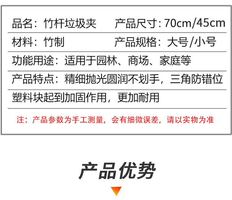 海斯迪克 竹制垃圾夹子 KQ123-2 70cm 大号 1个