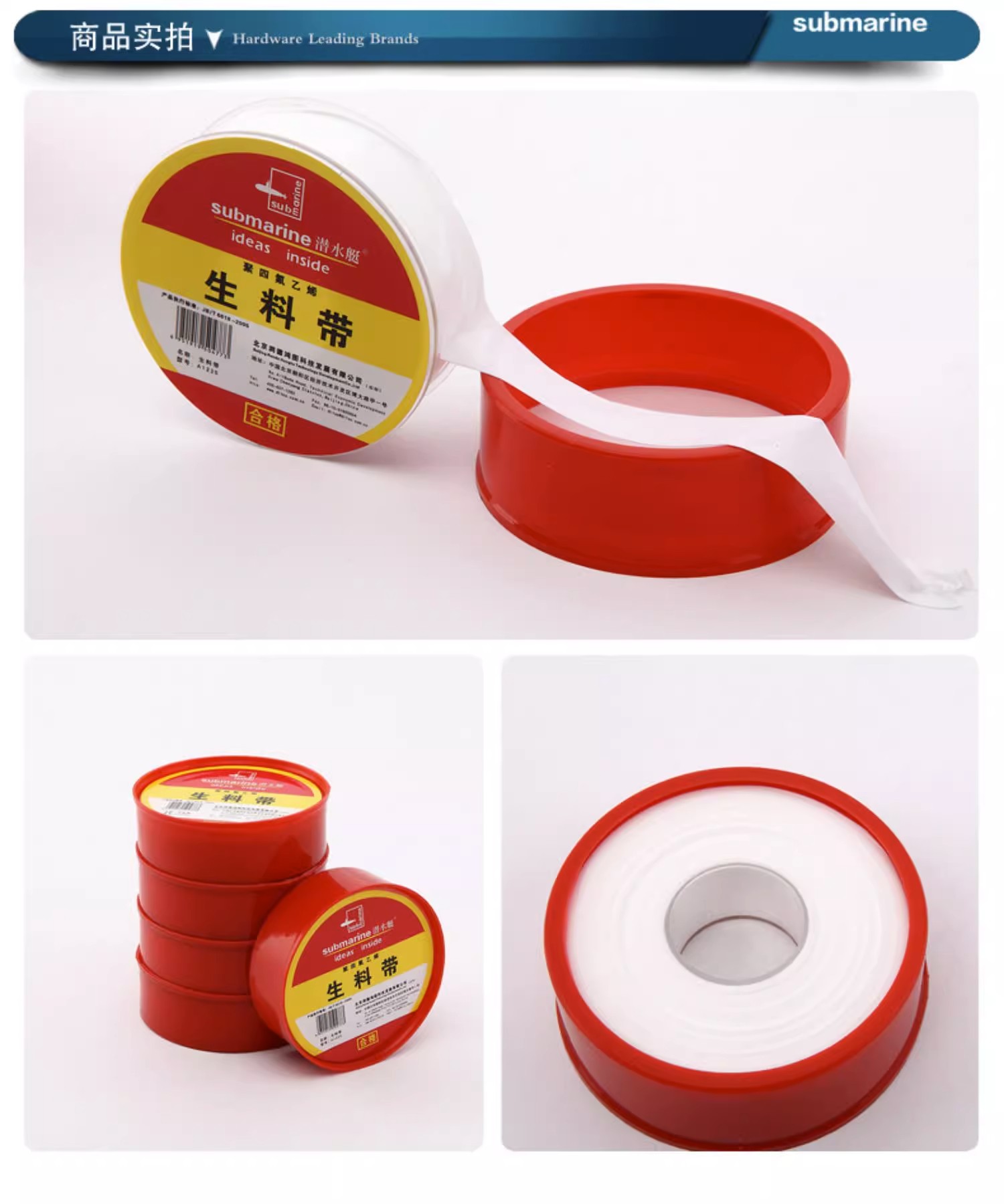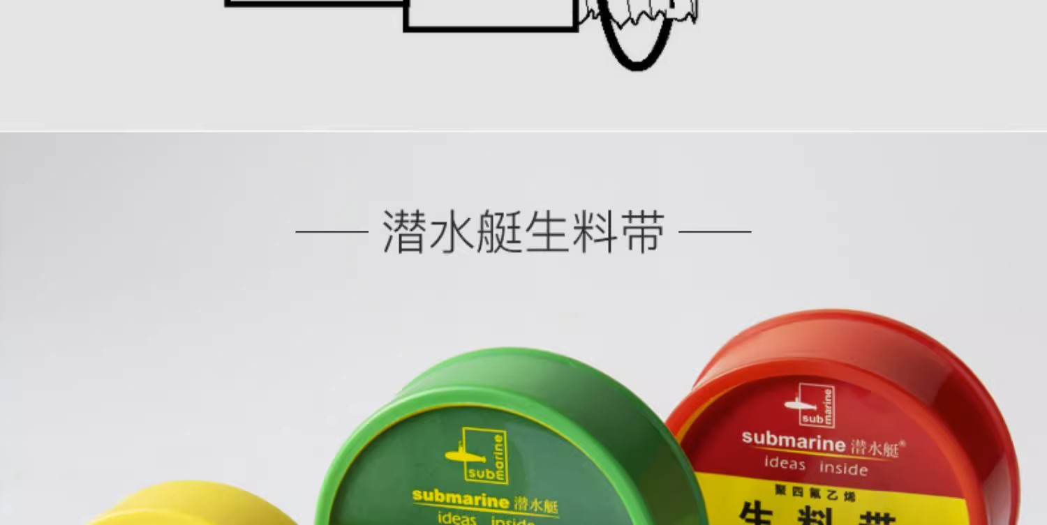 潜水艇 生料带 A1225 聚四氟乙烯 0.1mm×1.7cm×20m 1卷