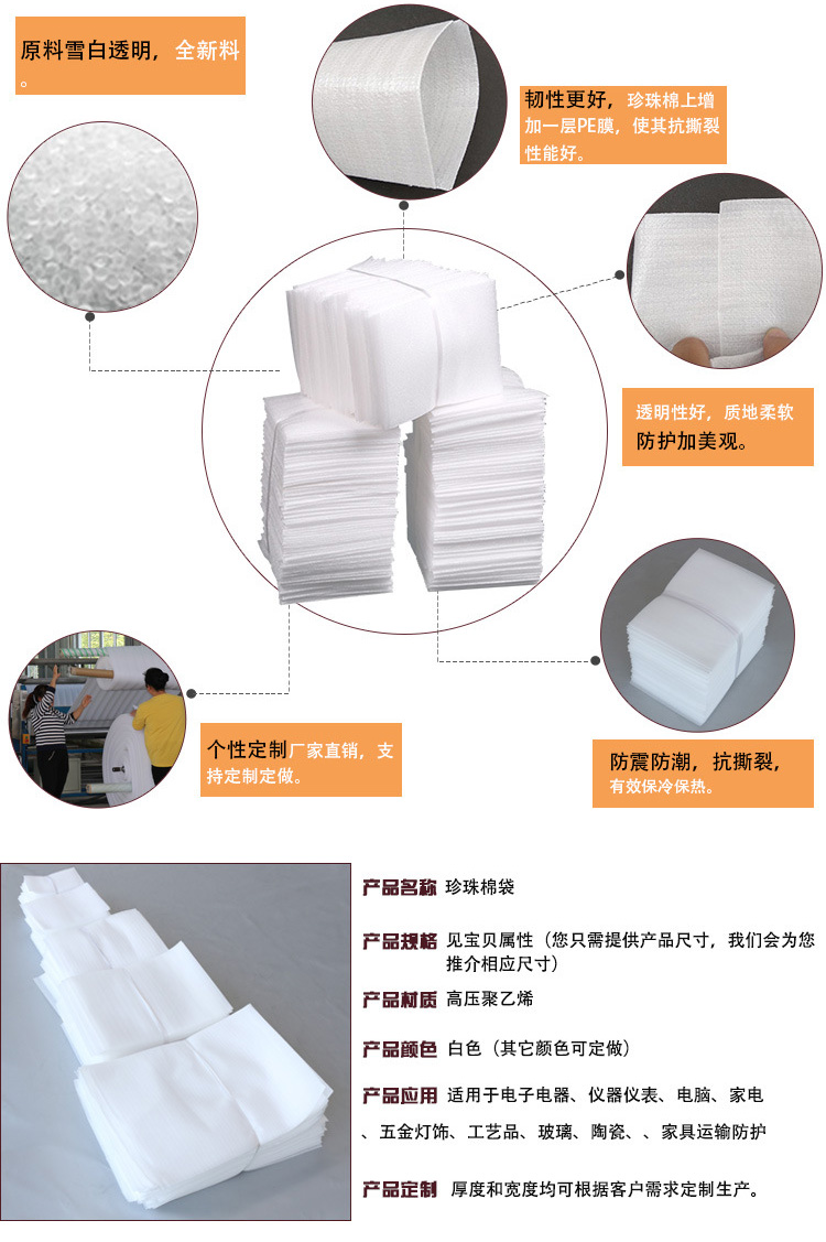 • 商品名称:海斯迪克 EPE珍珠棉袋子