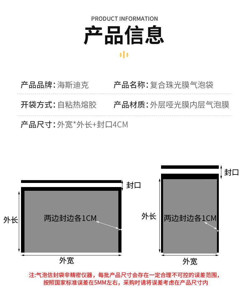 海斯迪克 珠光膜气泡袋 KB37-6 白色 20*20+4cm 300个 1包