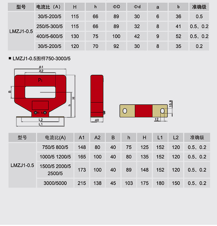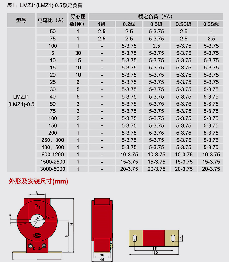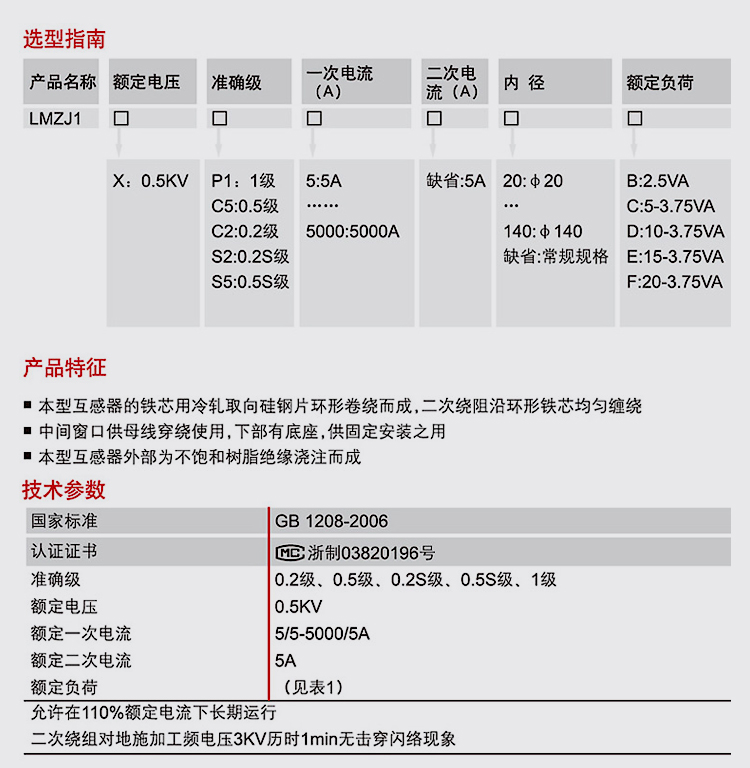 德力西电气 LMZJ1系列电流互感器 LMZJ1XC51505C φ30 150/5A 额定容量 5-3.75VA 1个