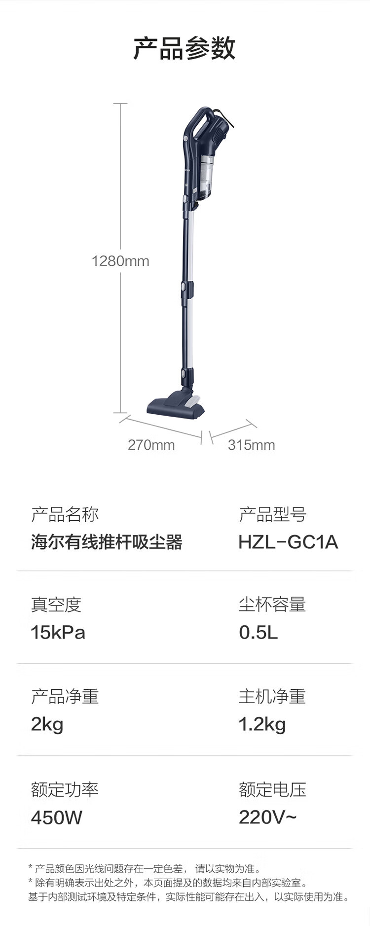 海尔 有线吸尘器 HZL-GC1A 450W 15kPa 1个