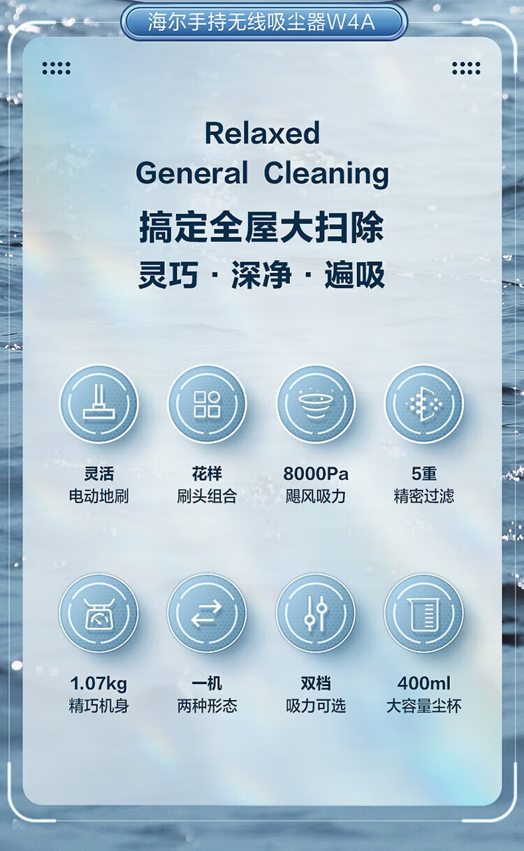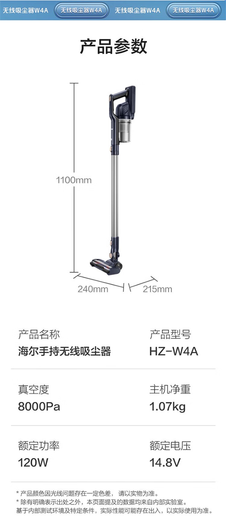 海尔 锂电无线吸尘器 HZ-W4A 120W 8kPa 伯爵蓝 1个