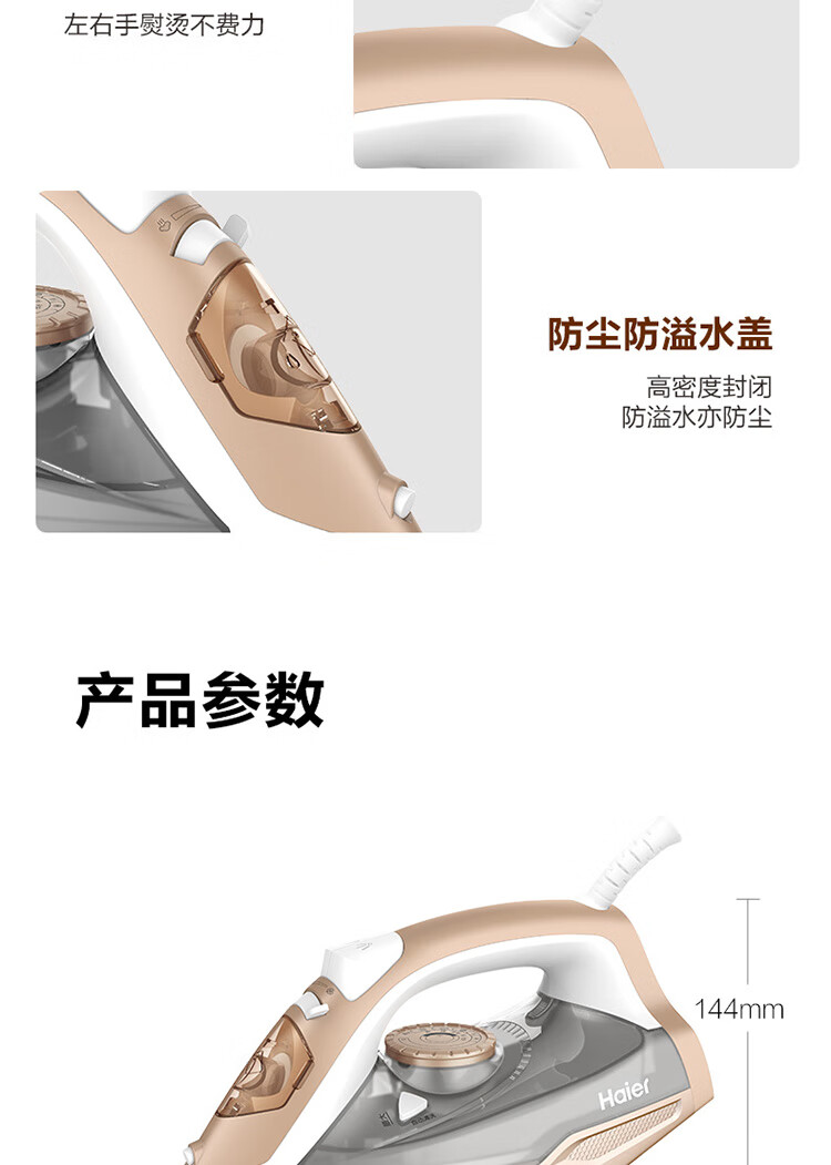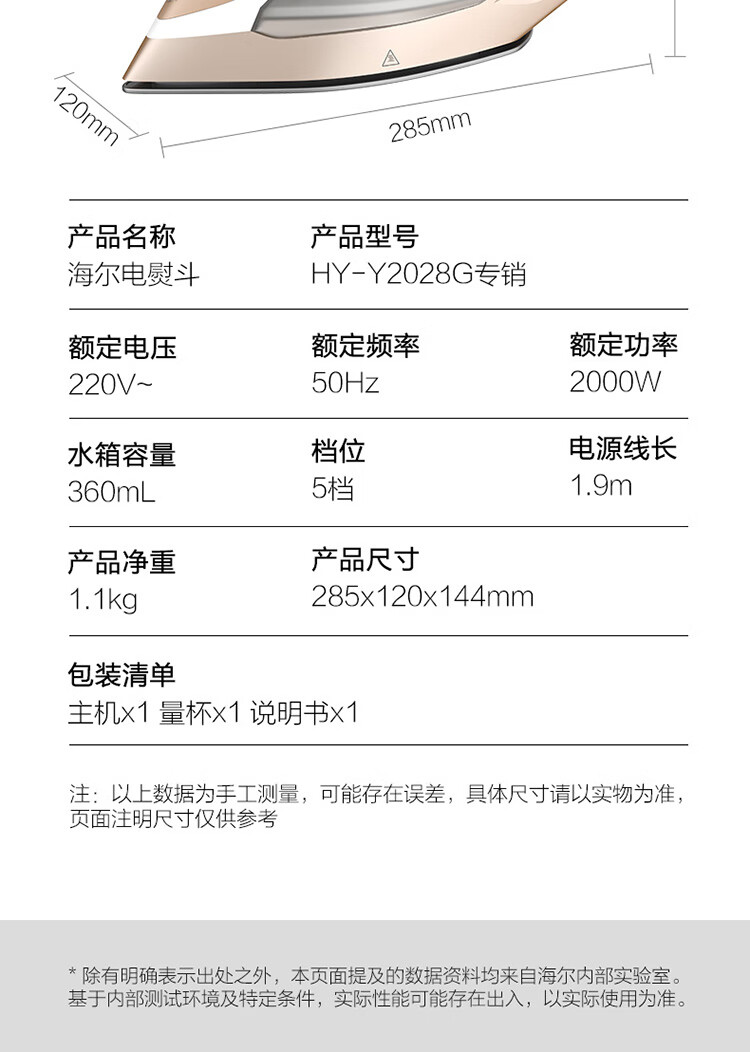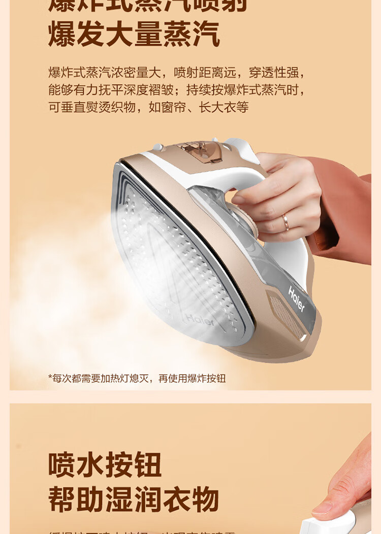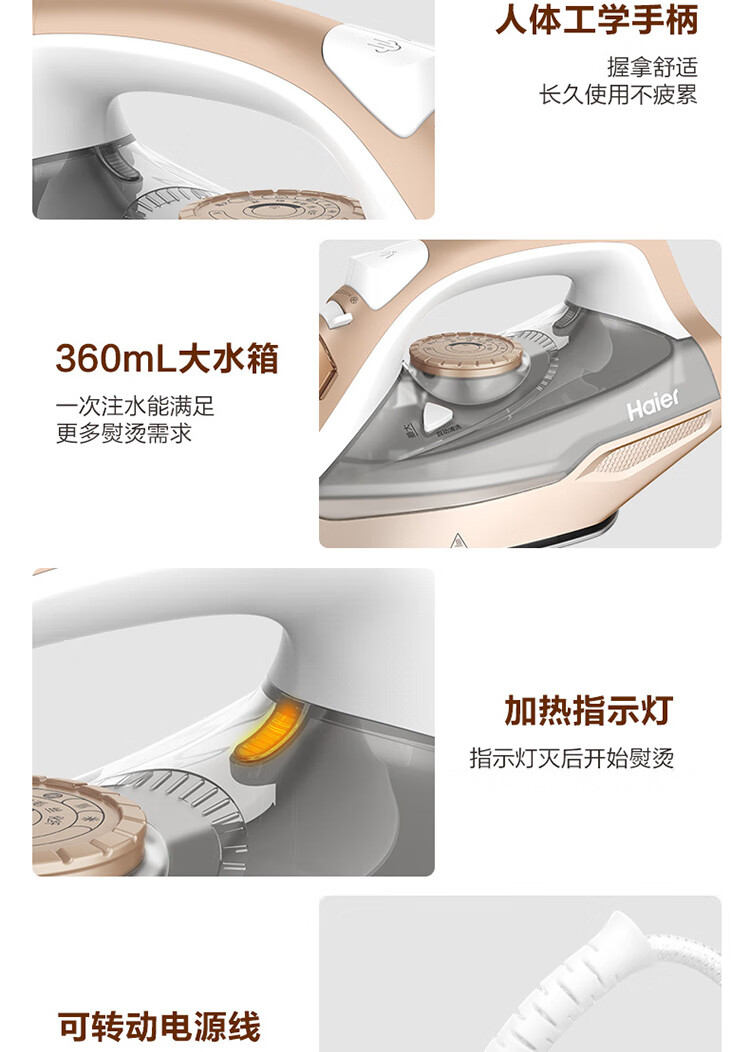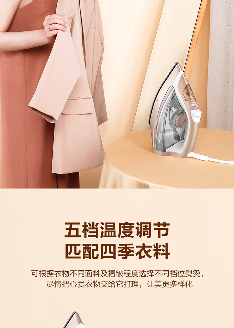 海尔 家用手持迷你熨斗 HY-Y2028G 2000W 5档控温 1台