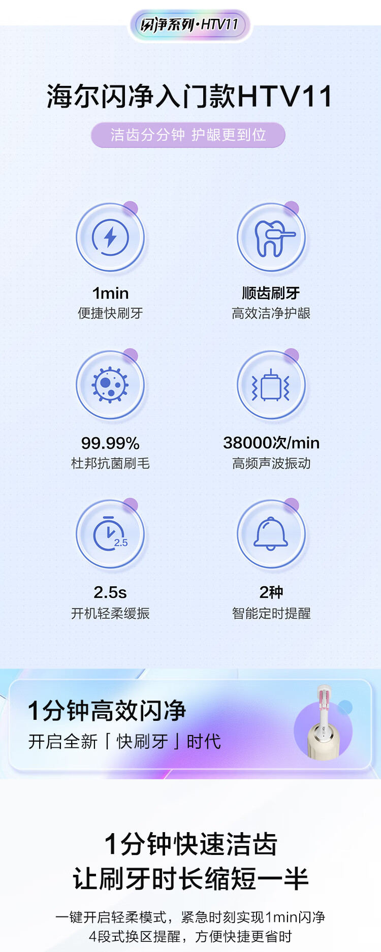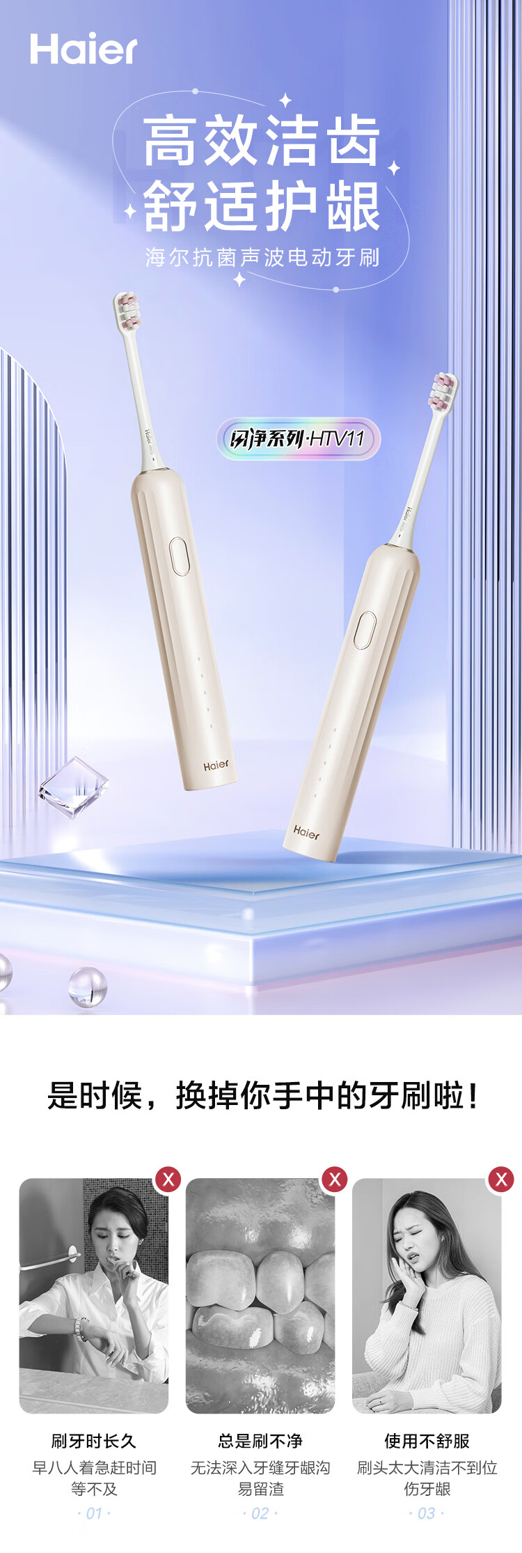 海尔 家用成人电动牙刷 HTV-1 浅啡米 1个