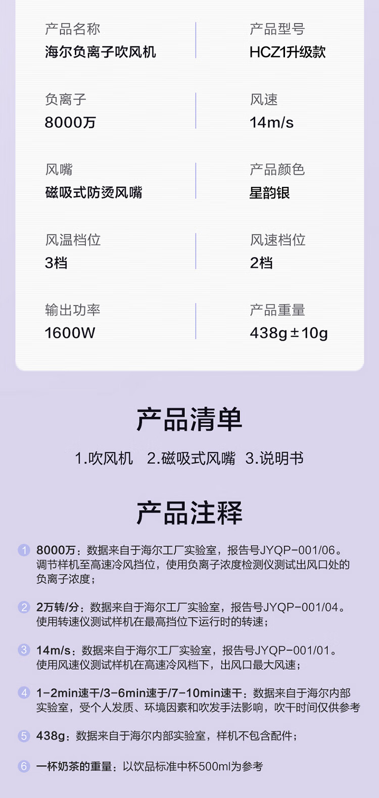 海尔 家用电吹风 HCZ1 1600w 1个
