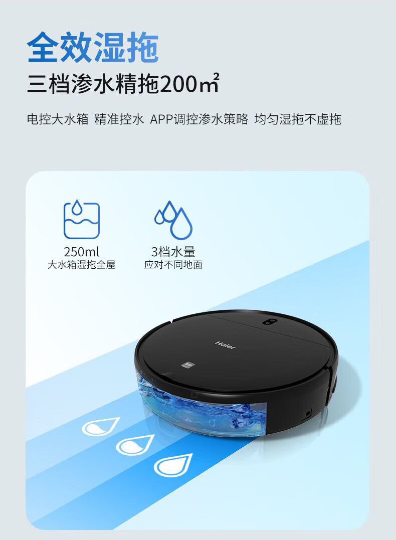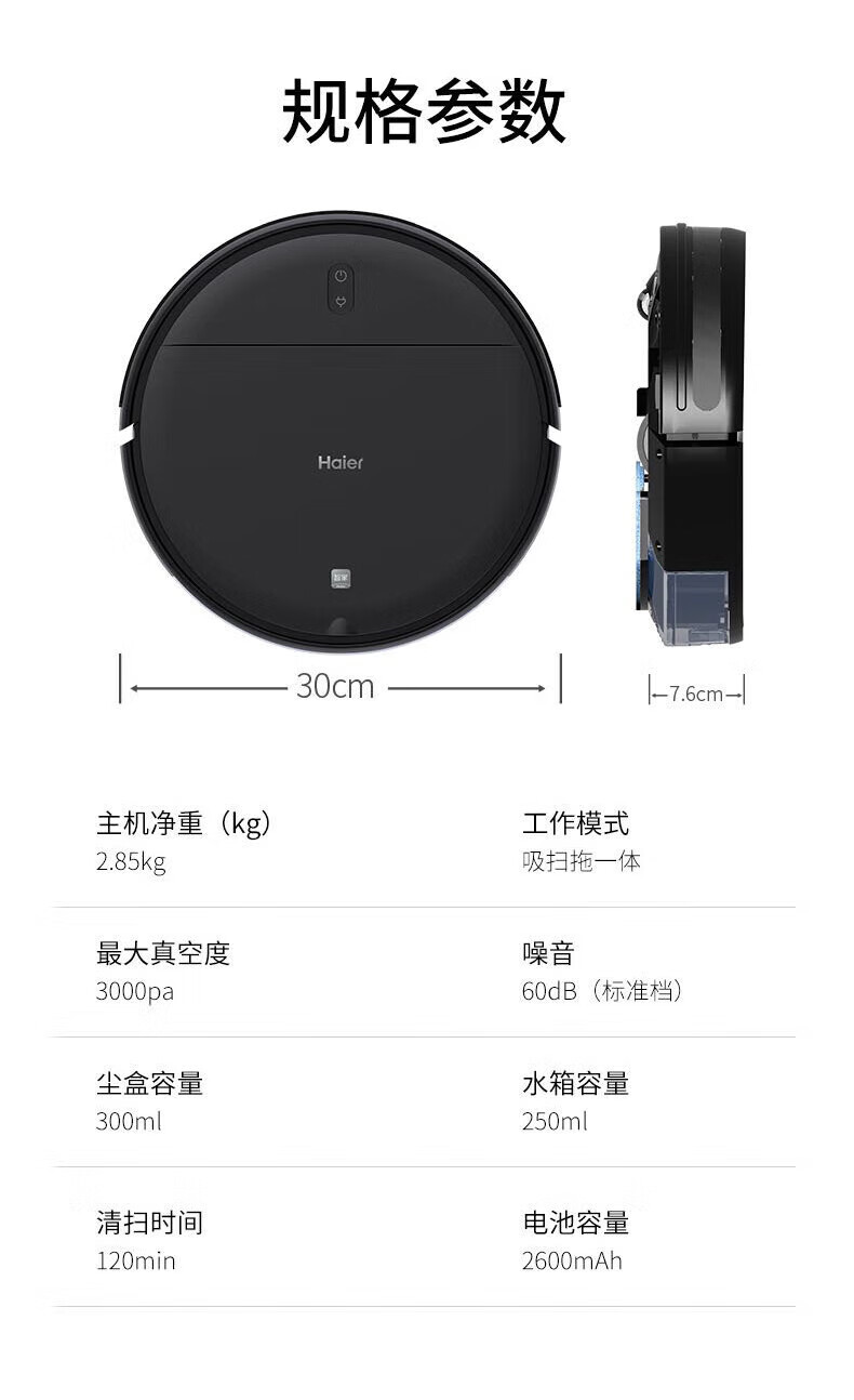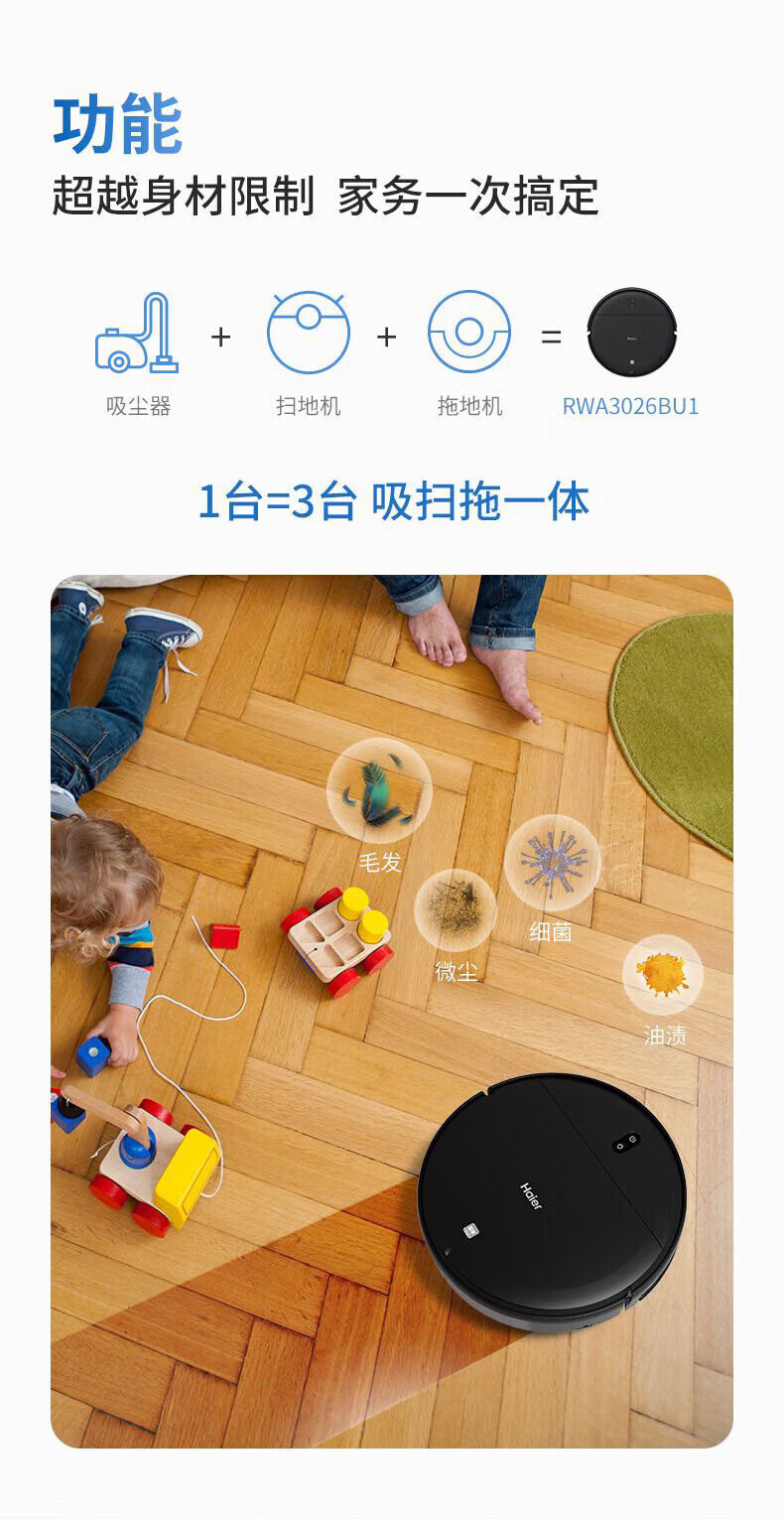 海尔 扫地机器人 RWA3026BU1 扫拖一体 黑色 1台