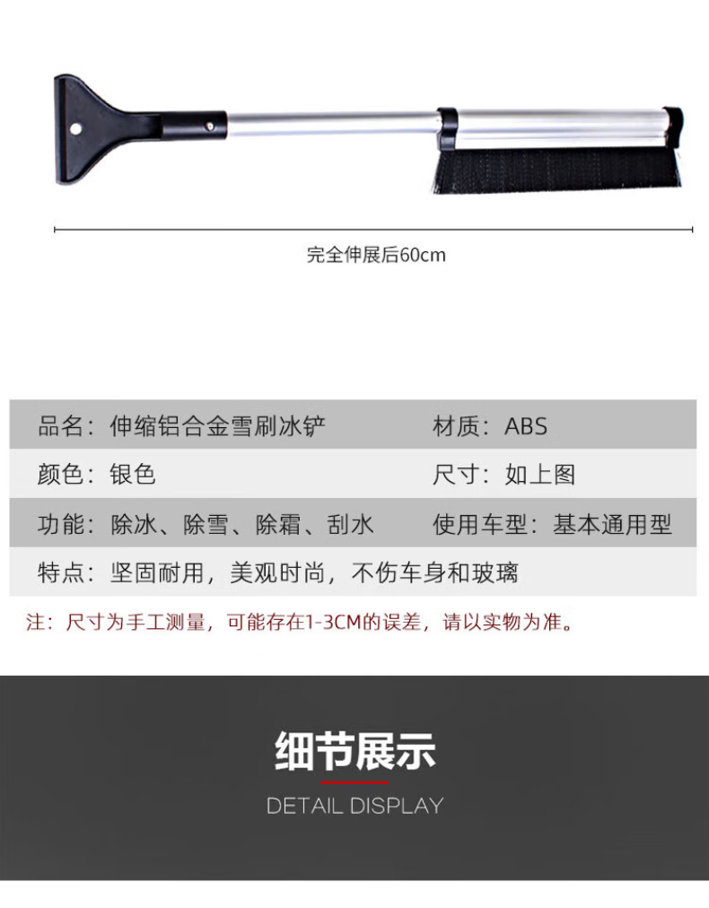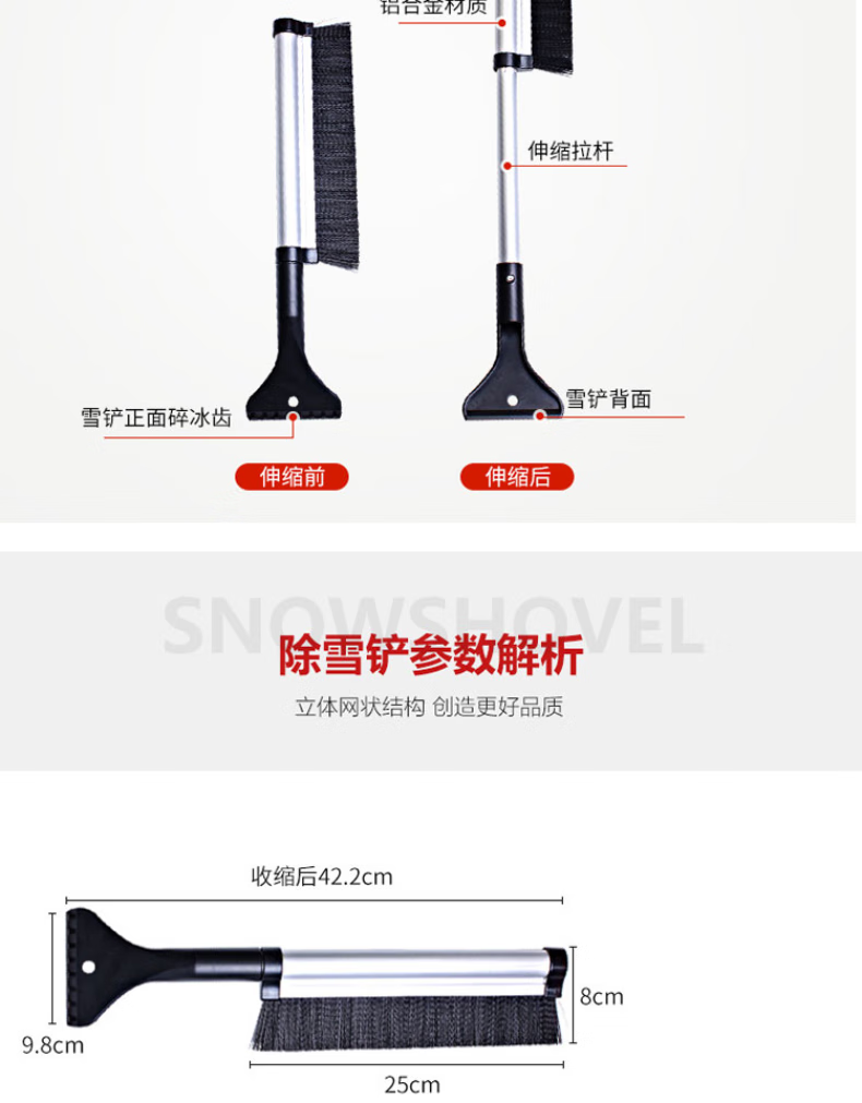 海斯迪克 可伸缩汽车除雪铲 KQ129-1 9.8*60cm 1把