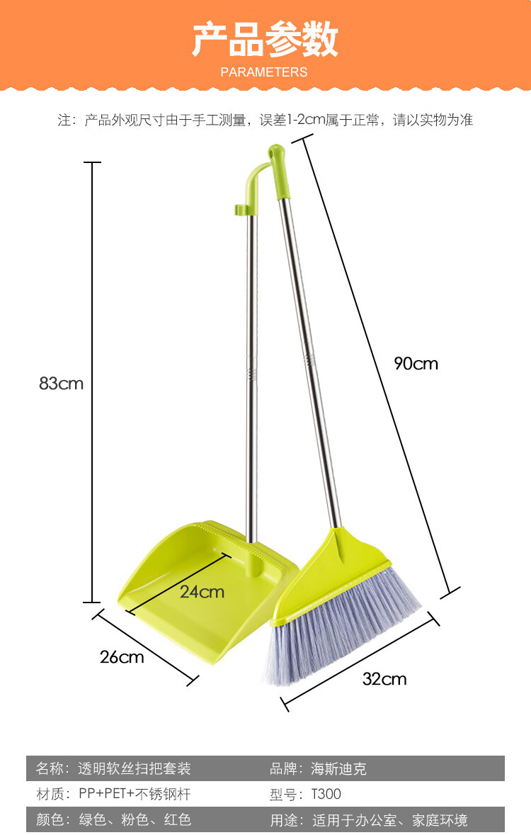 海斯迪克 软毛扫把簸箕 KQ128-1 32*90cm 红色 1套