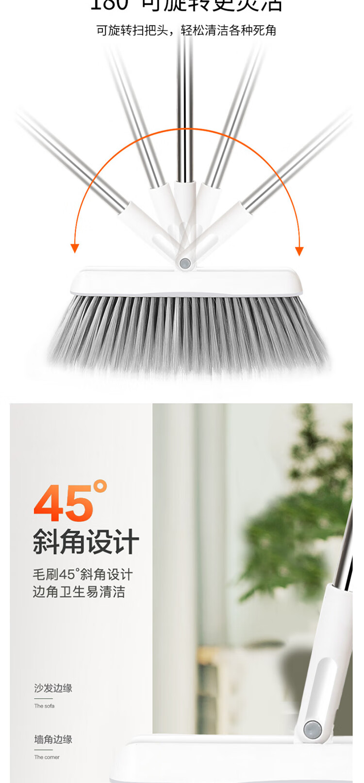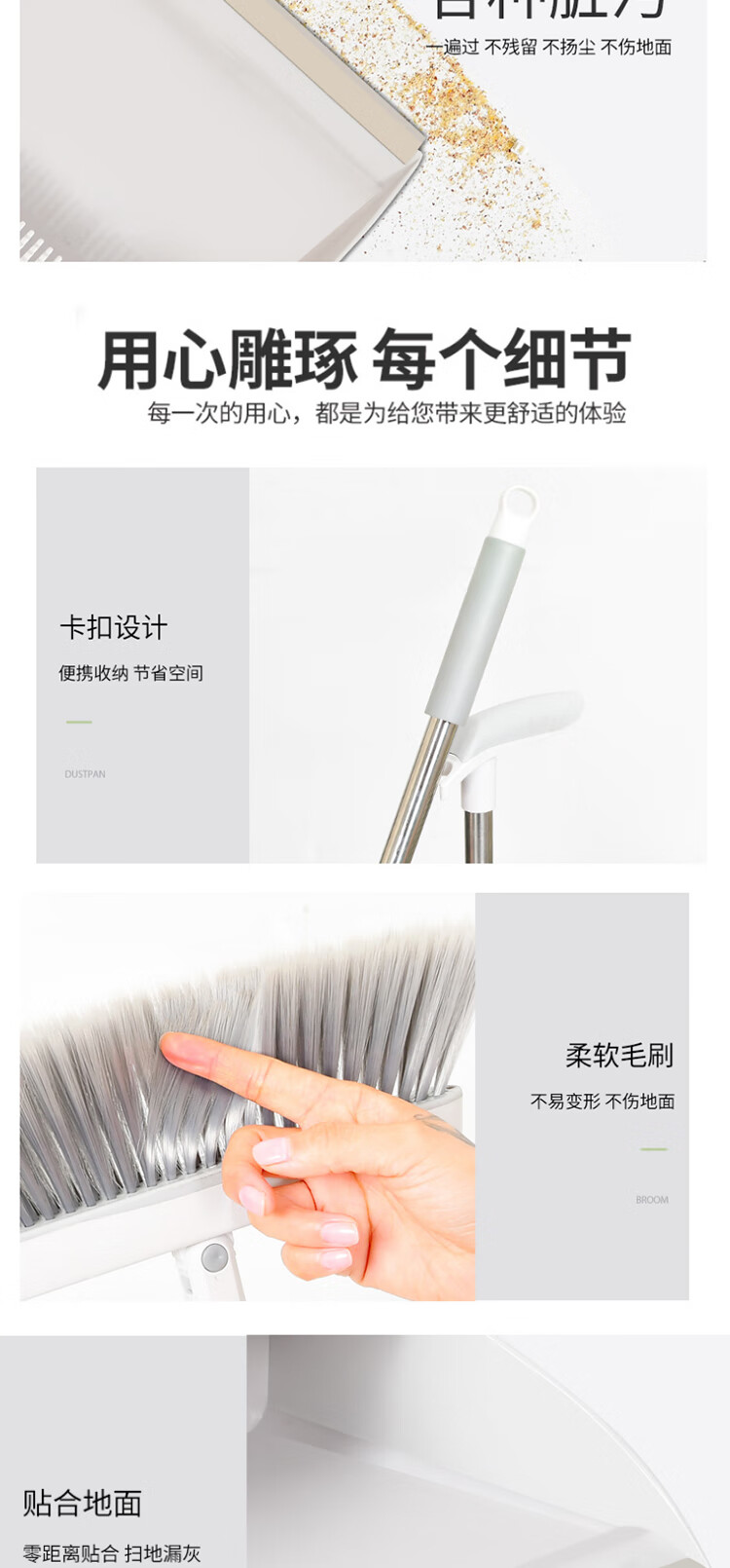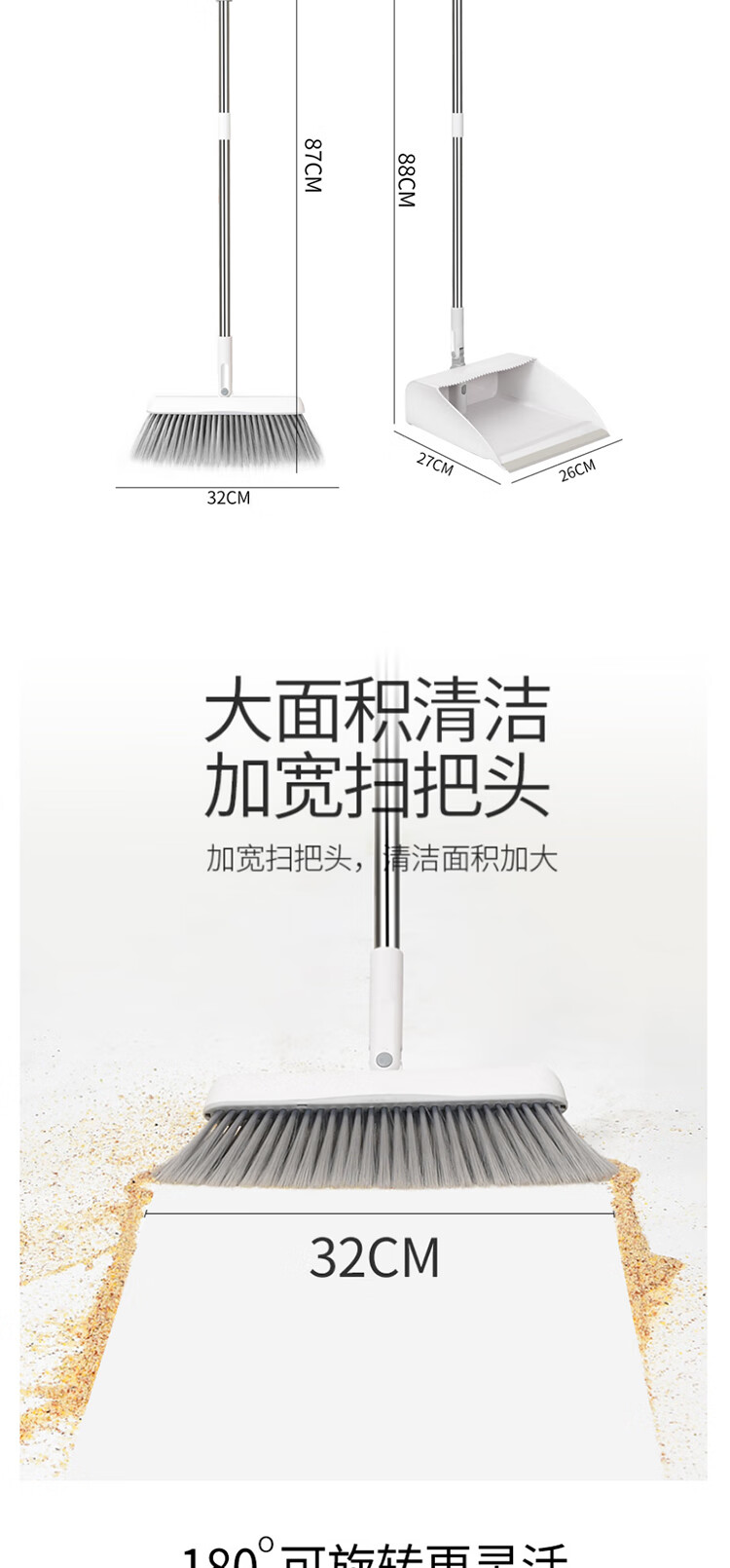海斯迪克 软毛扫把簸箕 KQ128-3 32*90cm 白色 1套