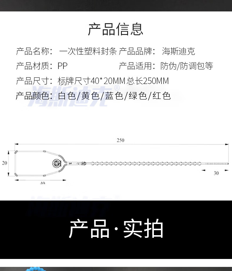 海斯迪克 一次性塑料封条 KB48-2 红色 25cm 100条 1包