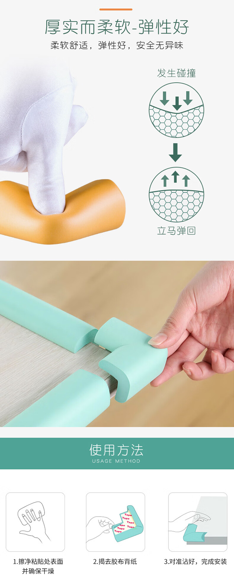 海斯迪克 桌角防撞护角 KA41-1 黄色 NBR L型 10个 1件