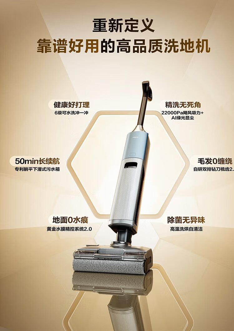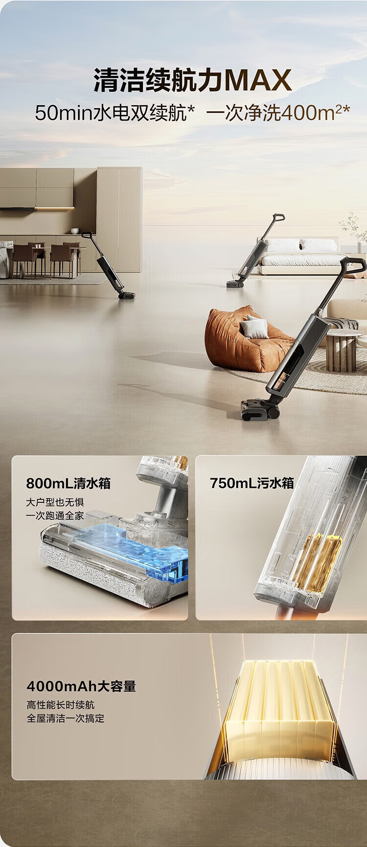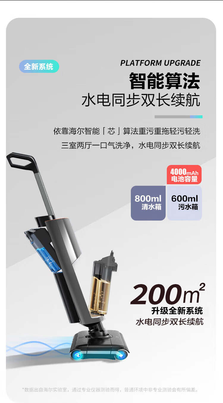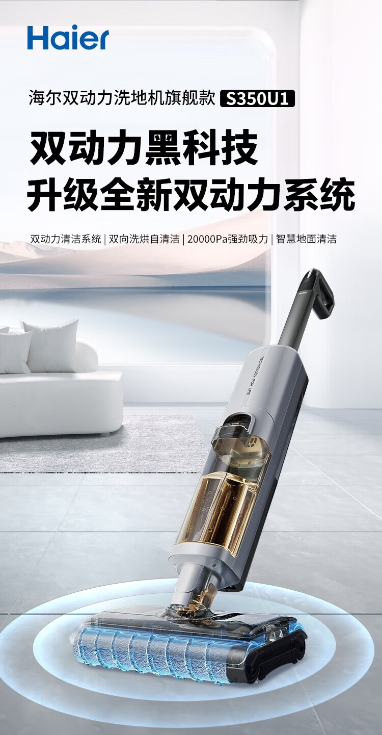 海尔 吸拖洗一体双动力全自动家用无线智能洗地机 S350U1 水箱容量800ml 1台