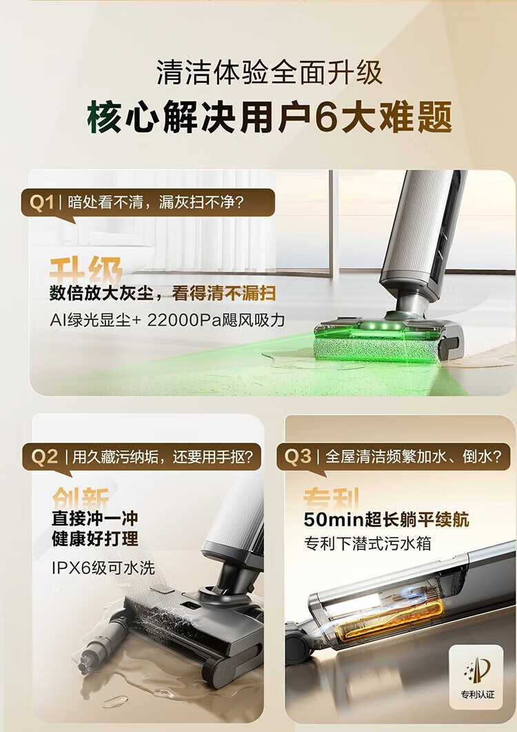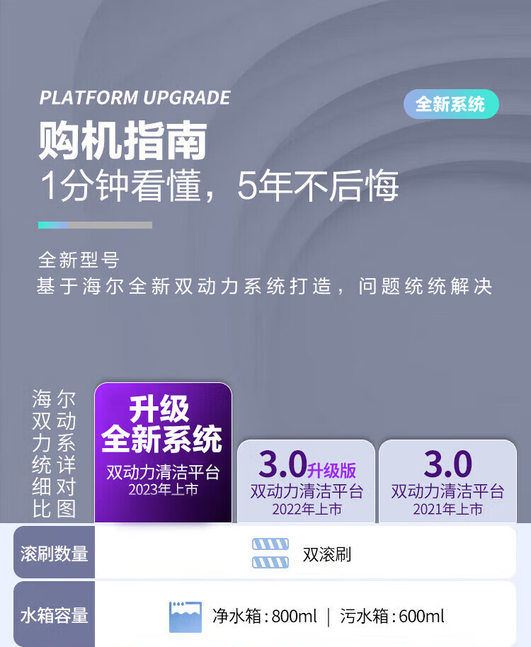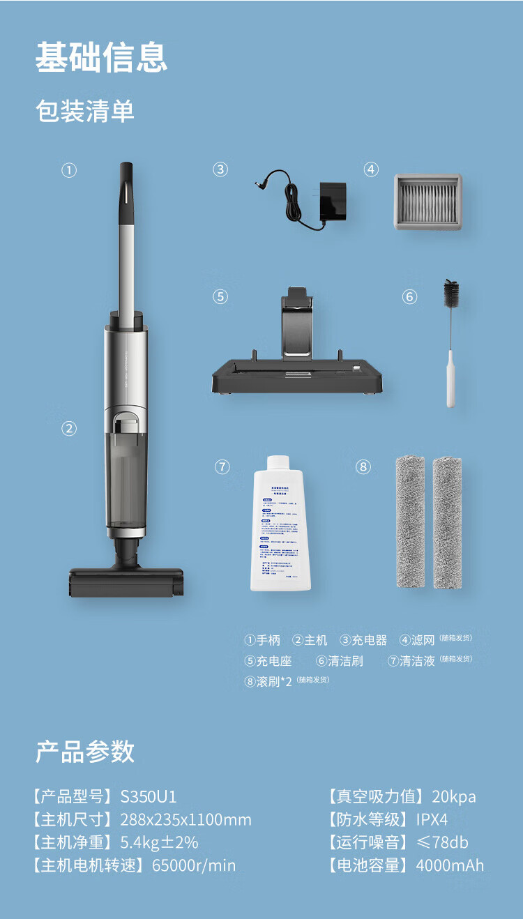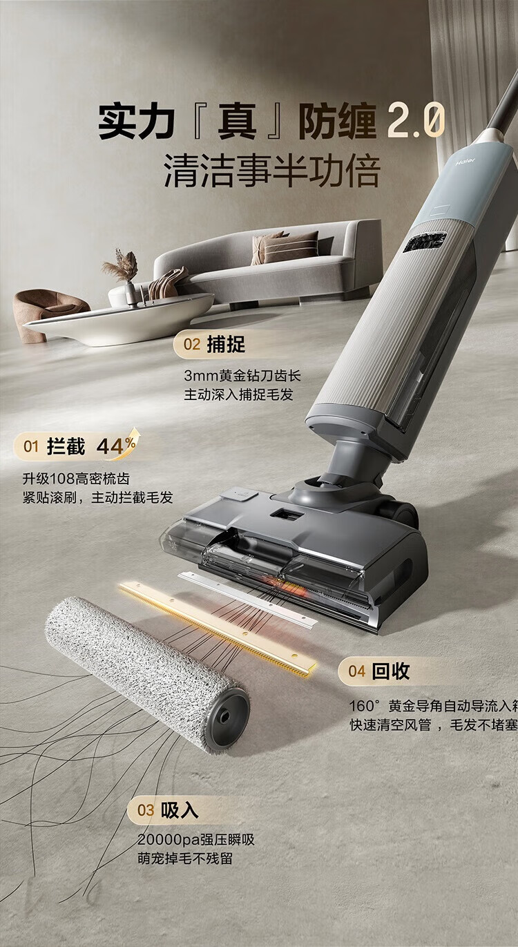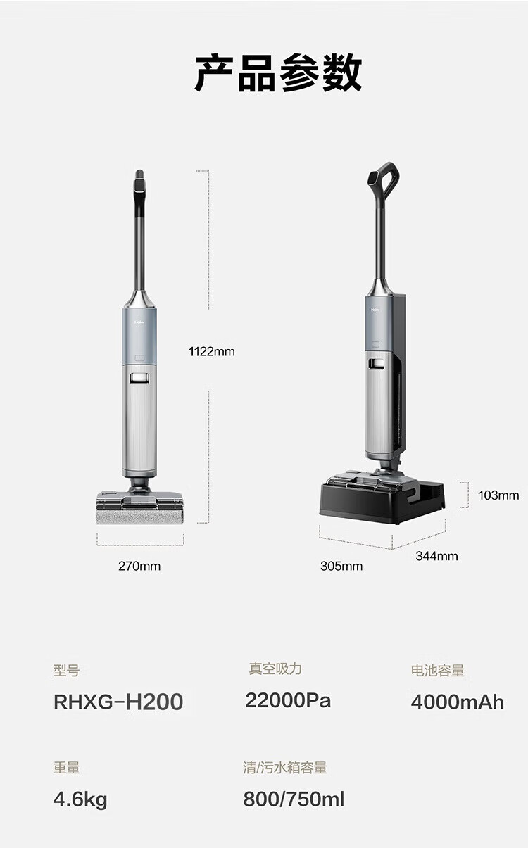海尔 吸拖洗一体双动力全自动家用无线智能洗地机 S350U1 水箱容量800ml 1台