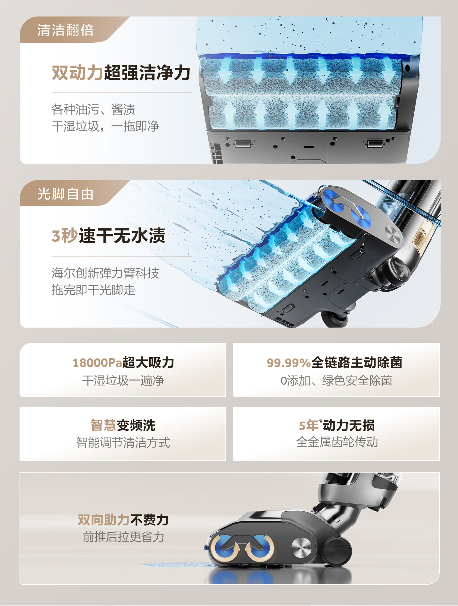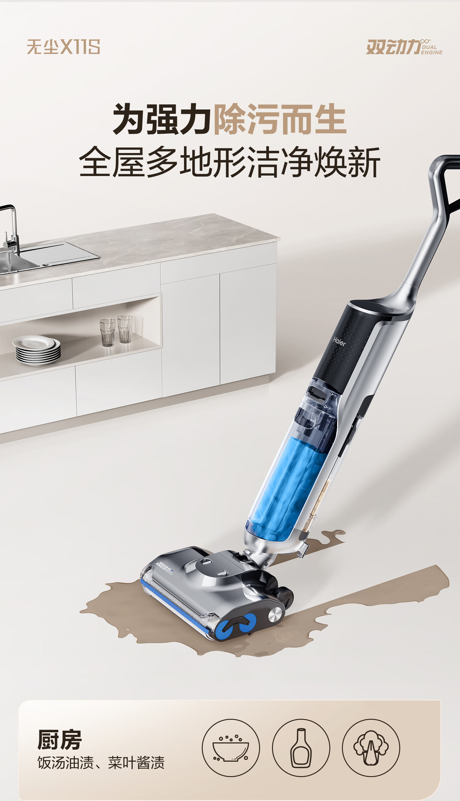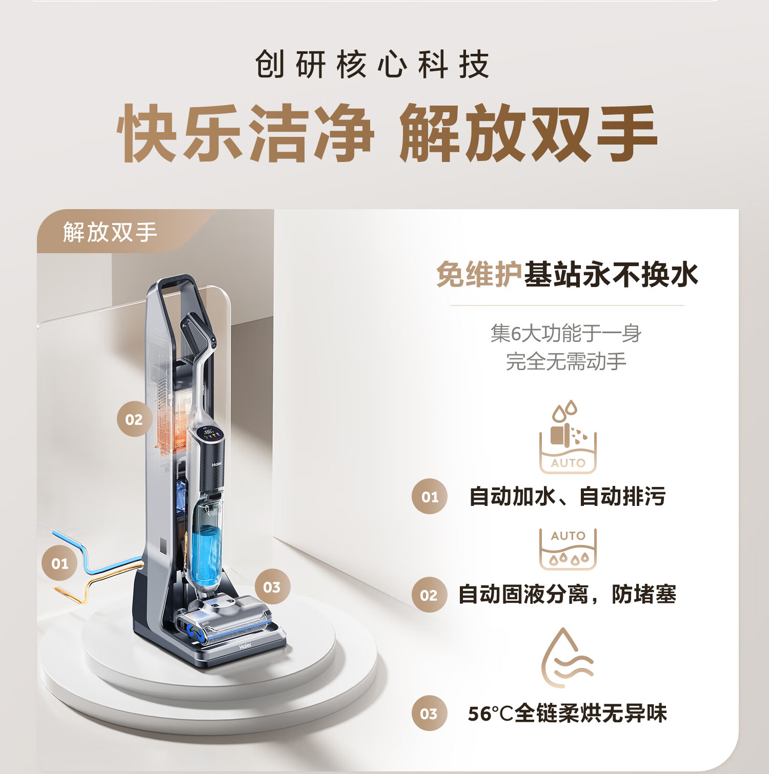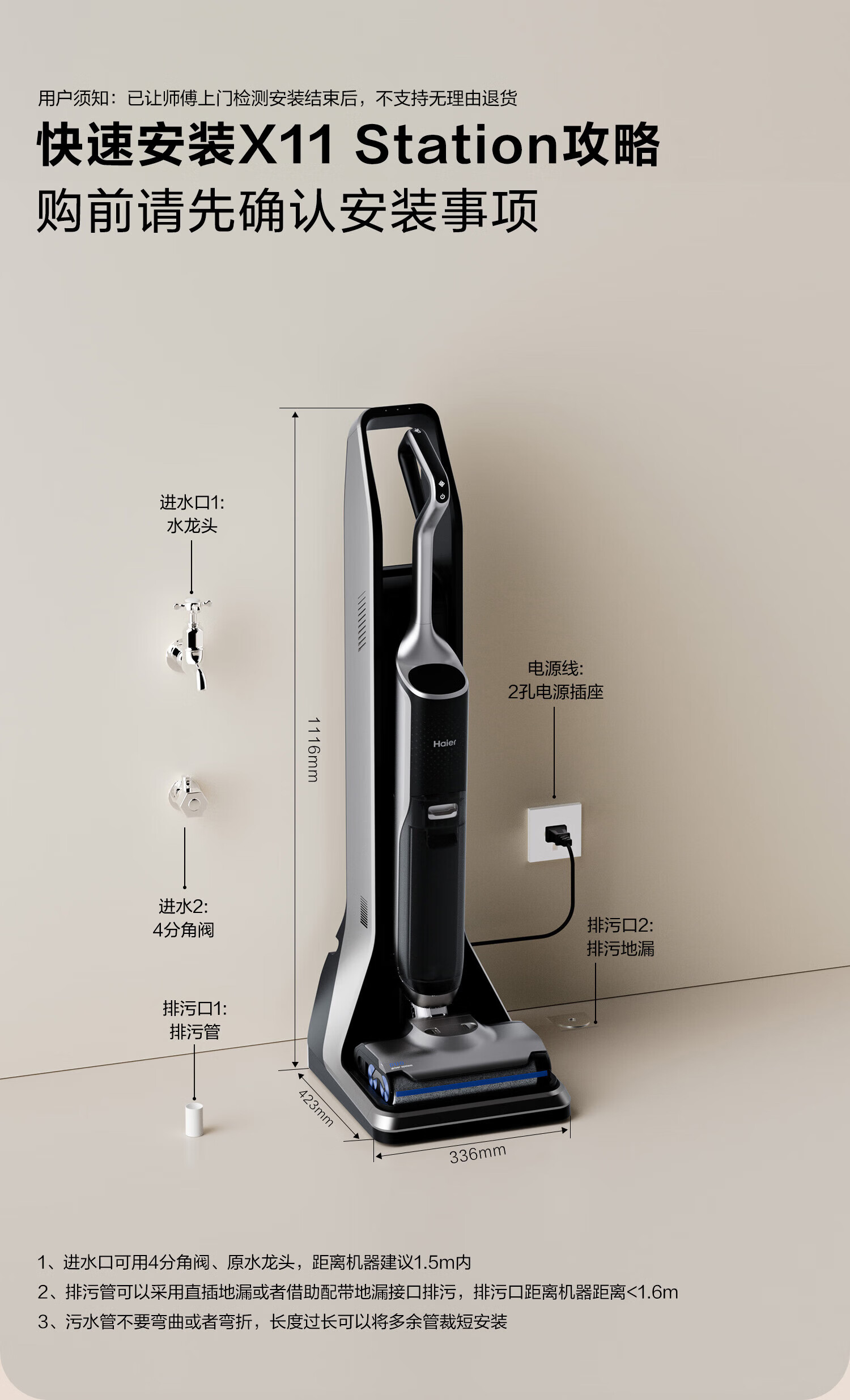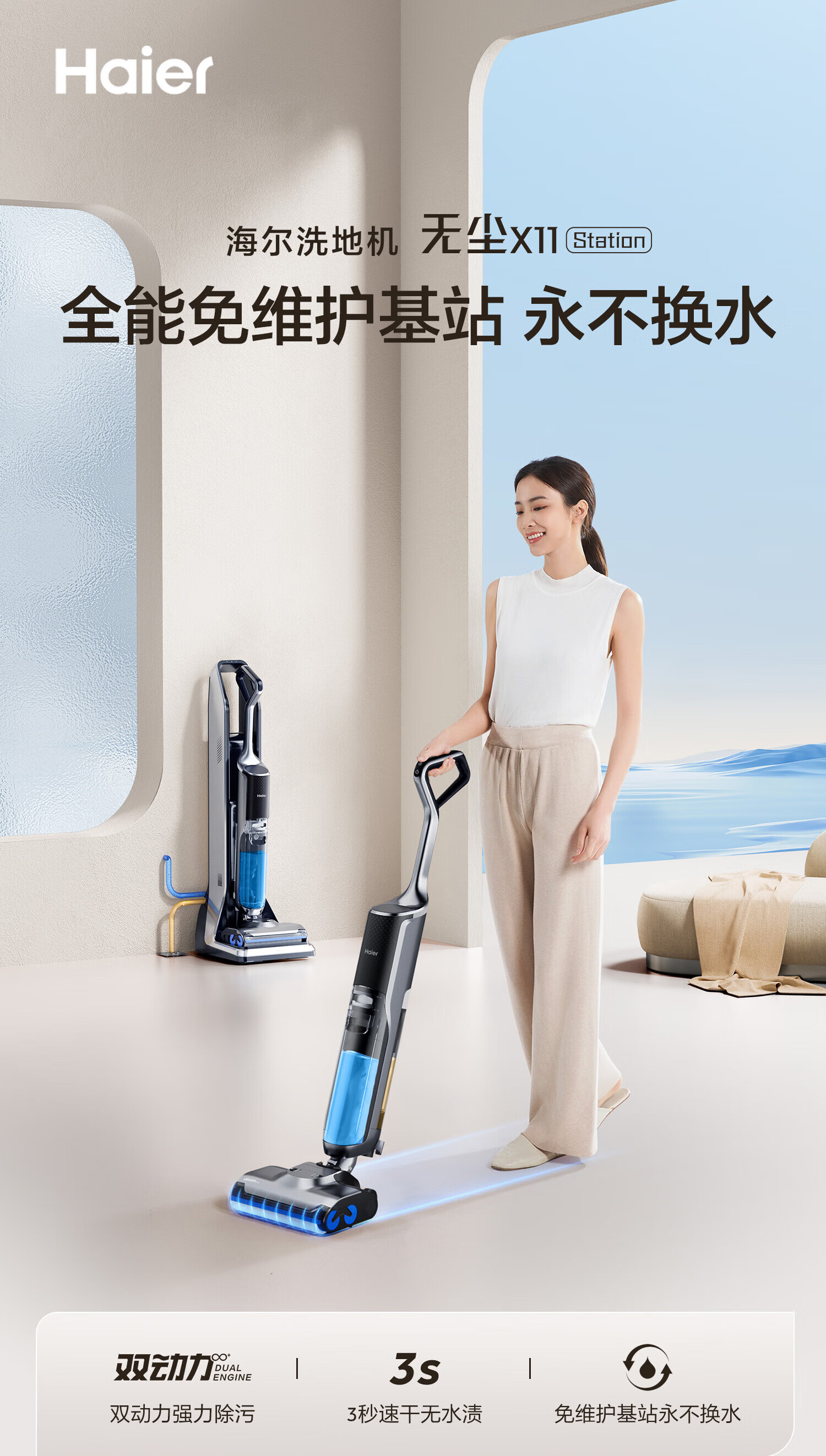 海尔 家用无线智能洗地机 【双动力全能基站款】 X11station 污水箱容量500ml 1台