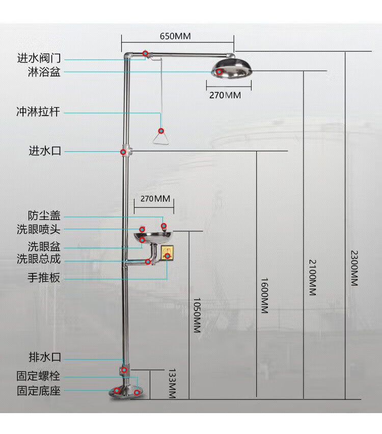 海斯迪克 洗眼器 KA42-6 304不锈钢 脚踏双开关紧急冲淋式 1个