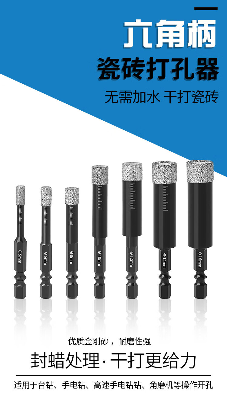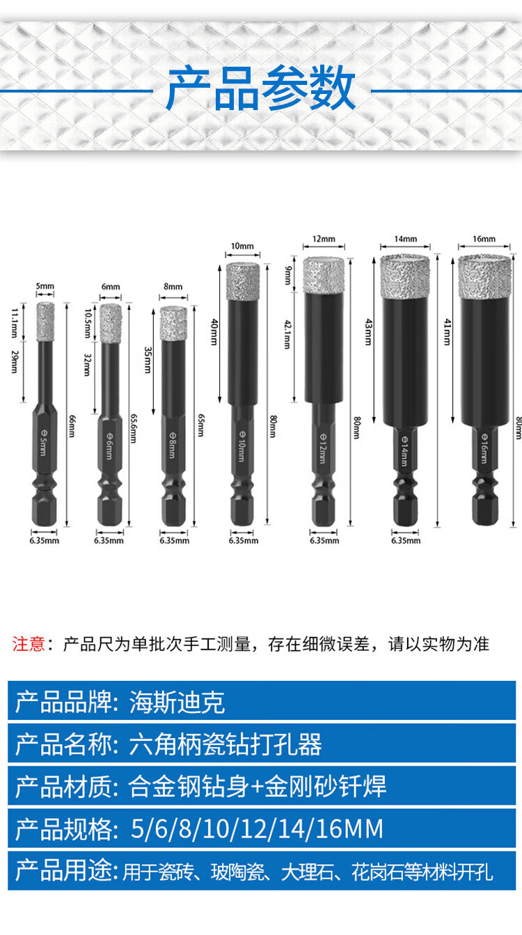 海斯迪克 钎焊干打瓷砖钻头 KK35-2 6mm 1个